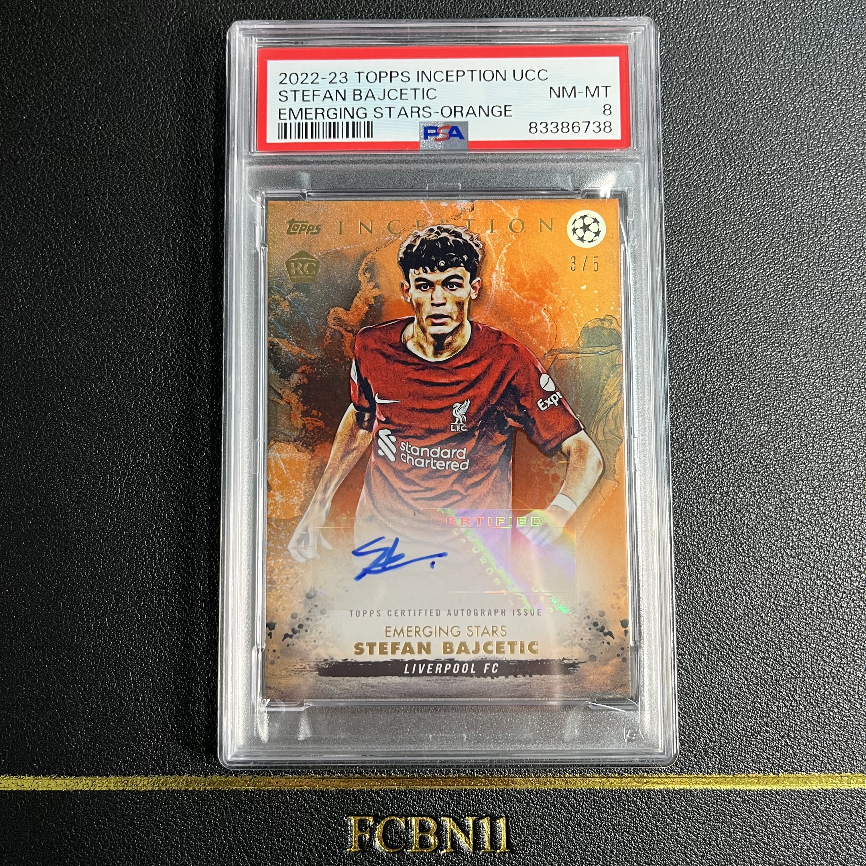 【FCB拍卖】2022-23 TOPPS INCEPTION BAJCETIC 巴依切蒂奇 RC 新秀 签字 5编 3/5 橙折签 PSA8分 利物浦 西班牙 萨尔茨堡红牛 欧冠 盗梦空间{的偶尔}FCBN11