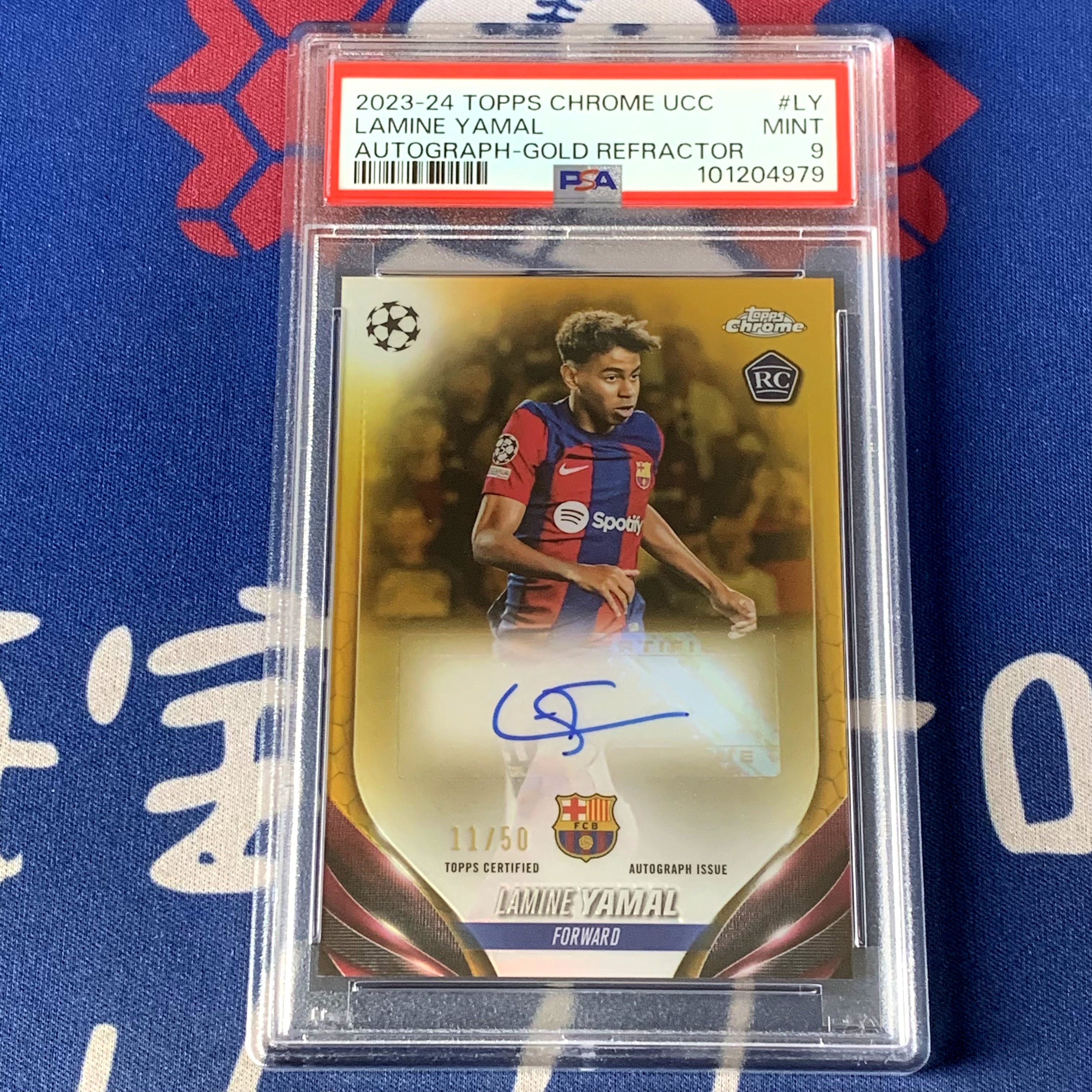 2023-24 Topps Chrome Lamine Yamal 【海宝】TC 欧冠 巴萨 巴塞罗那 西班牙 新秀RC 亚马尔 50编 金折 签字卡 PSA9分 未来可期 收藏必备【K1】