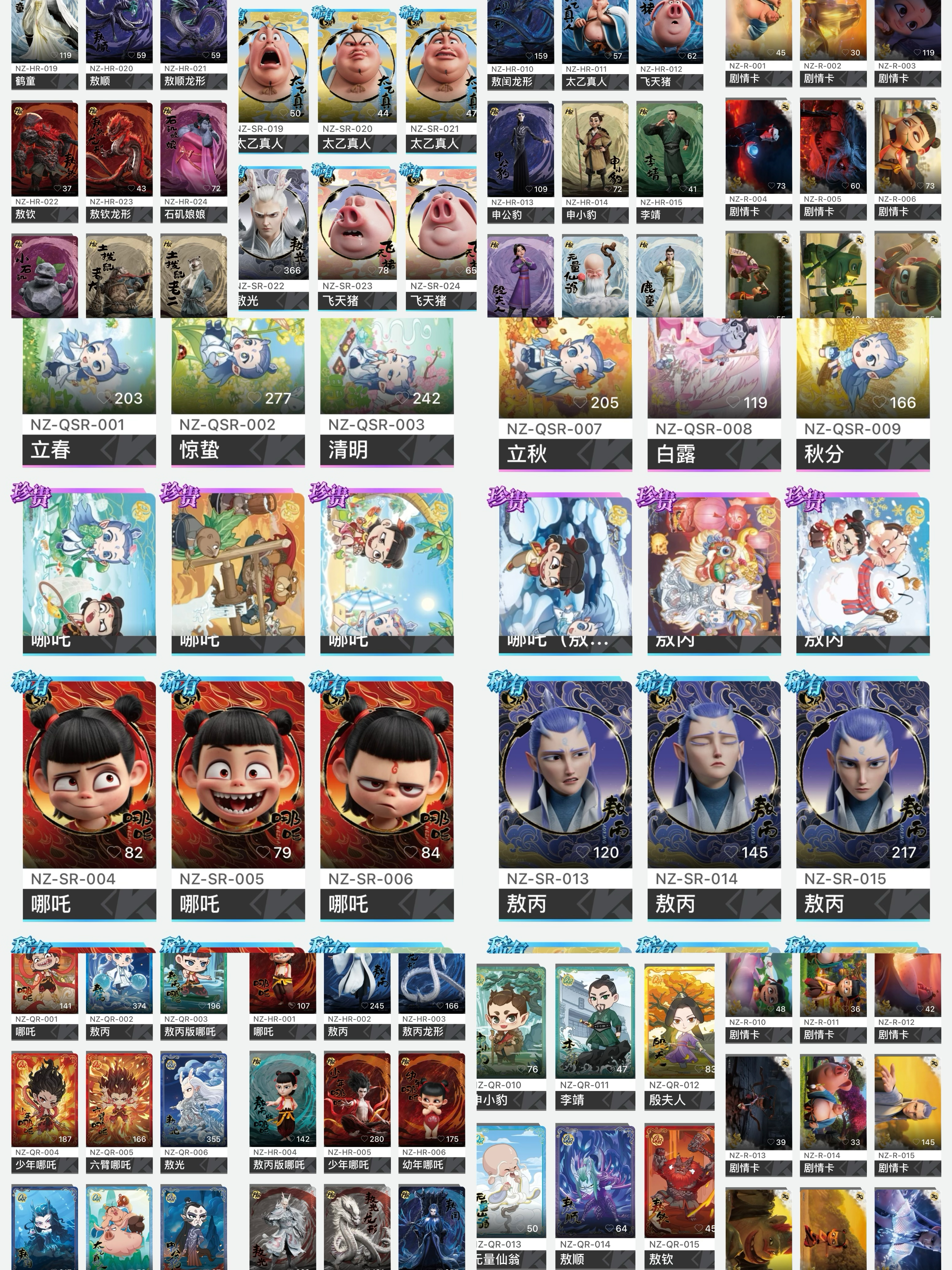 卡游 哪吒之魔童闹海小全套134张,QSR12张,QDR12张,SR24张,QR15张,HR31张,R40张,卡机直发