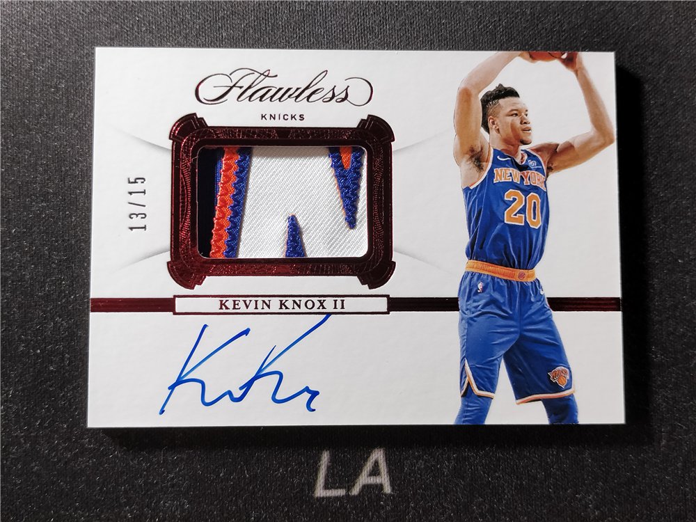【LA拍卖】2019-20 Panini Flawless Kevin Knox II 手提箱 凯文 诺克斯二世 尼克斯 勇士队 红宝石平行 PA /15编 GU三色Patch 暴力切割 卡签签字 CCH