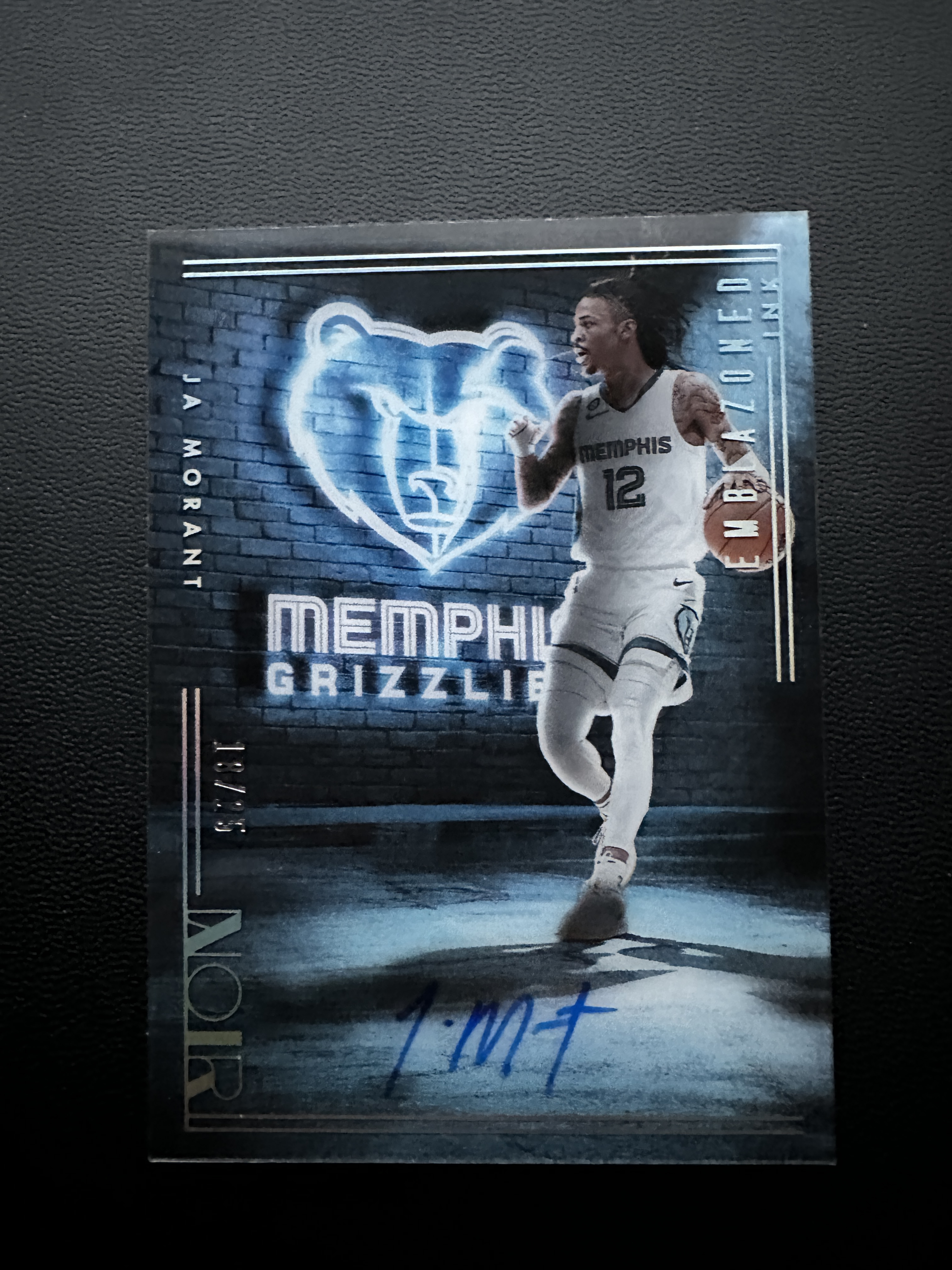 2023-24 Panini Noir Ja Morant Noir系列 灰熊队 贾 莫兰特 卡签签字 霓虹灯 18/25编