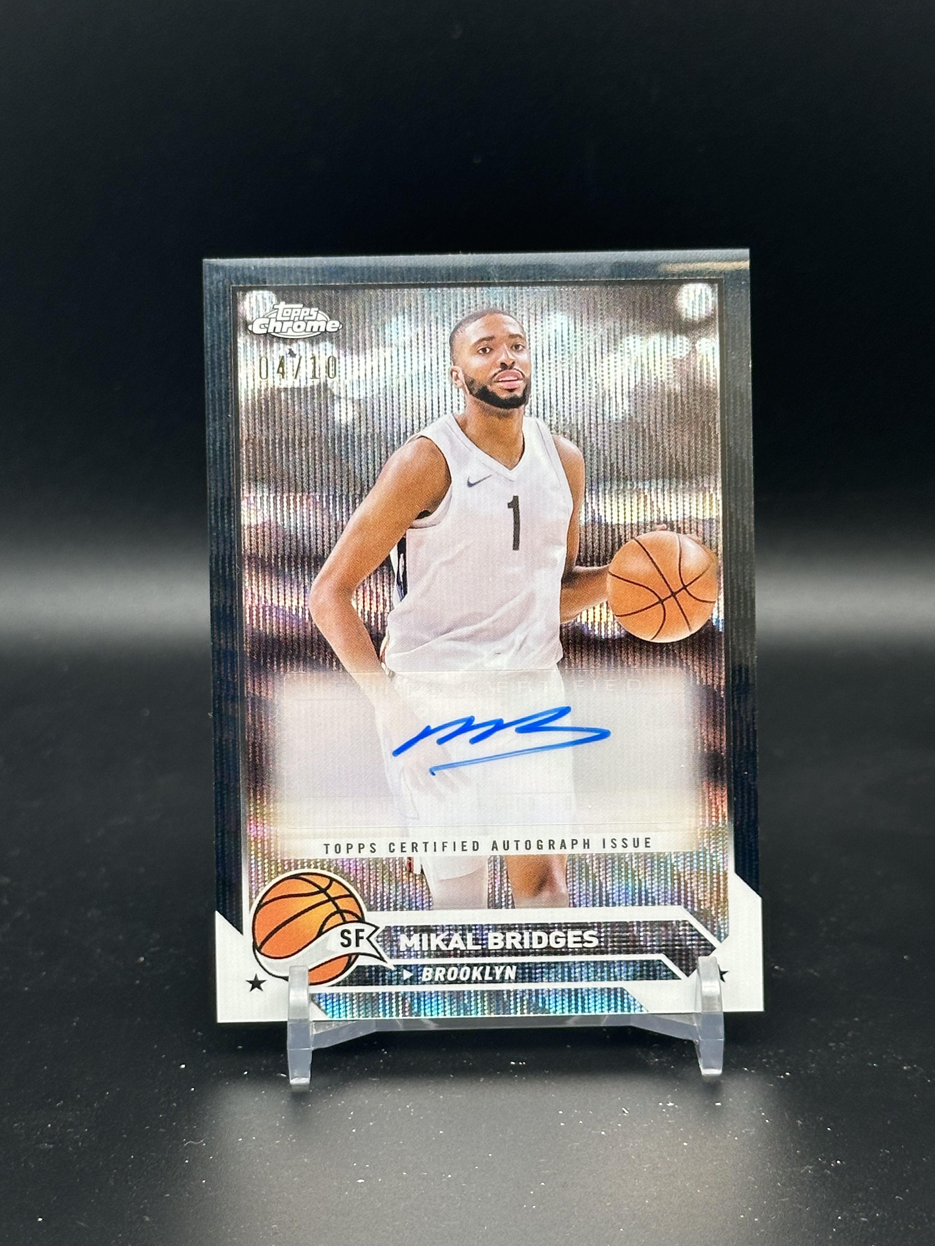 2023-24 Topps Chrome Mikal Bridges 大桥 米卡尔 布里奇斯 Black Wave Refractor 黑色波纹折签字 #04/10编 篮网皮 SP 【大卫拍卖】