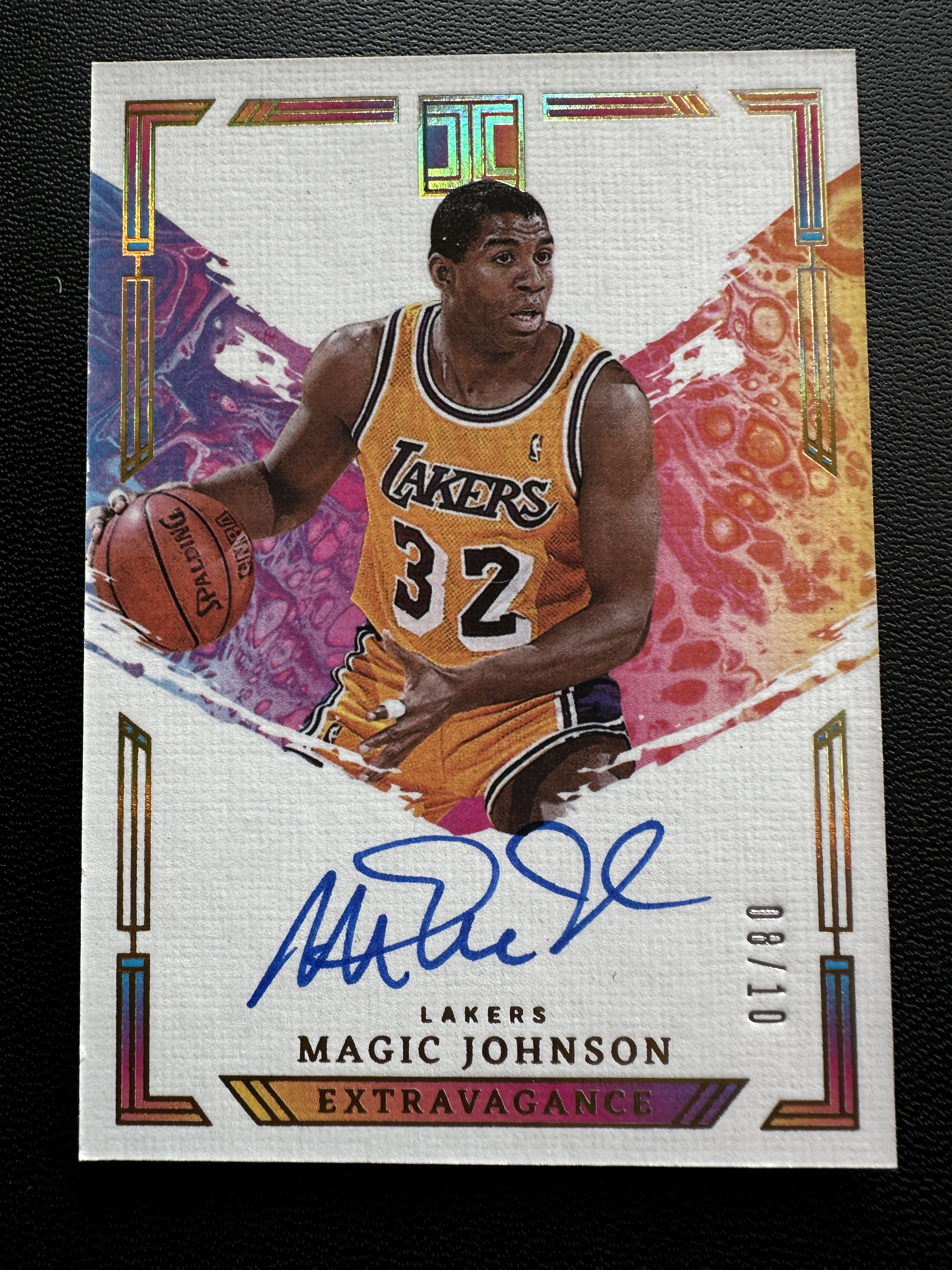2023-24 Panini Impeccable Magic Johnson 小真金系列 湖人队 魔术师 约翰逊 卡签签字 8/10 金平行