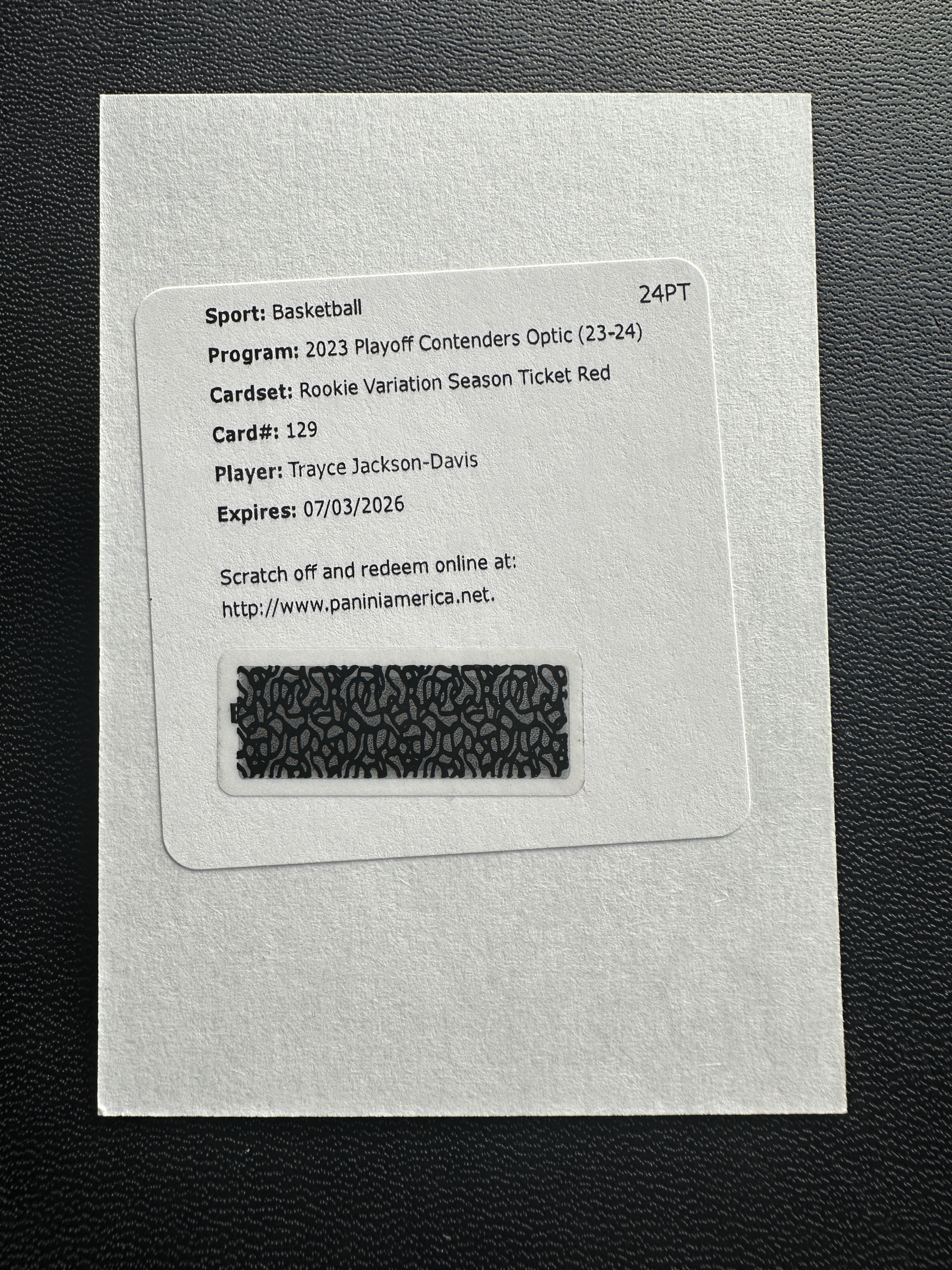 2023-24 Panini Contenders Optic Trayce Jackson Davis RC 球票系列 勇士队 戴维斯 土鸡蛋 RC新秀 红折 75编(交换版 只发板子 不发码)