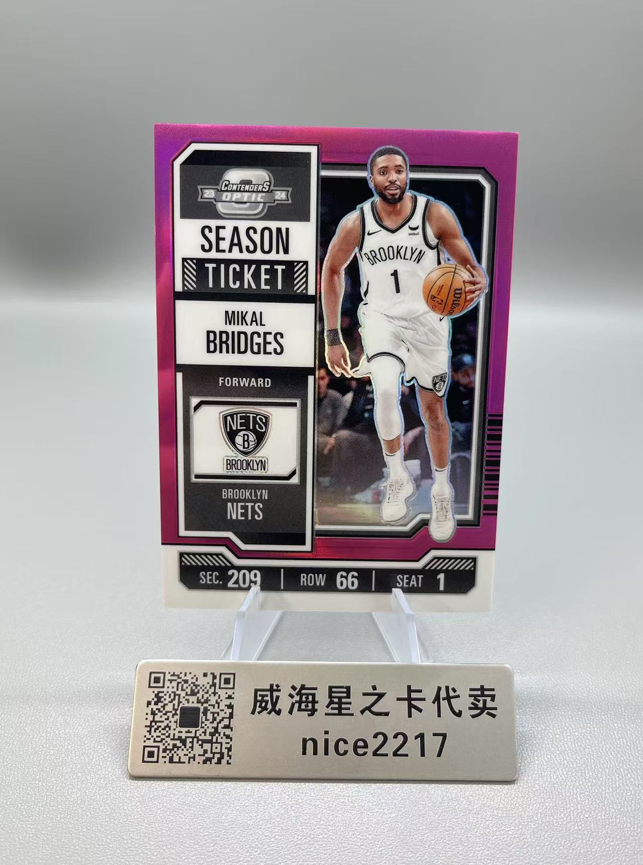 2023-24 球票 Contenders Optic Mikal Bridges 【威海星之卡】篮网 米卡尔 布里奇斯 大乔 大桥 41/75编 粉折 折射 base 瑕疵看图 博53