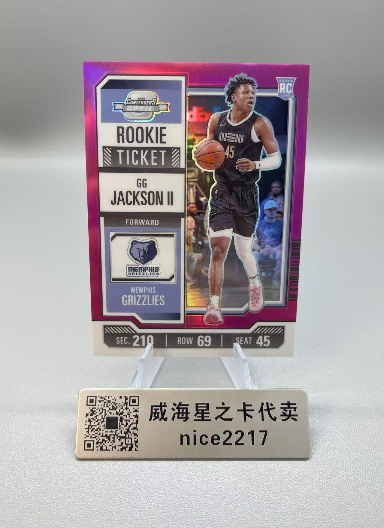 2023-24 球票 Contenders Optic gg jackson ii RC 【威海星之卡】灰熊 新秀 GG 杰克逊二世 40/75编 粉折 折射 base 瑕疵看图 博56