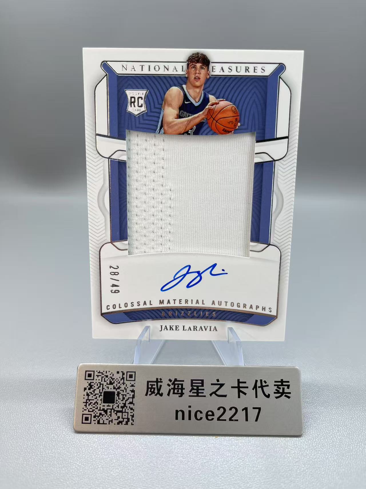 2022-23 国宝 National Treasures Jake LaRavia RC 【威海星之卡】灰熊 杰克 拉拉维亚 28/49编 新秀 RJA 球衣物料 卡签 签字 银平行 瑕疵图YZ80