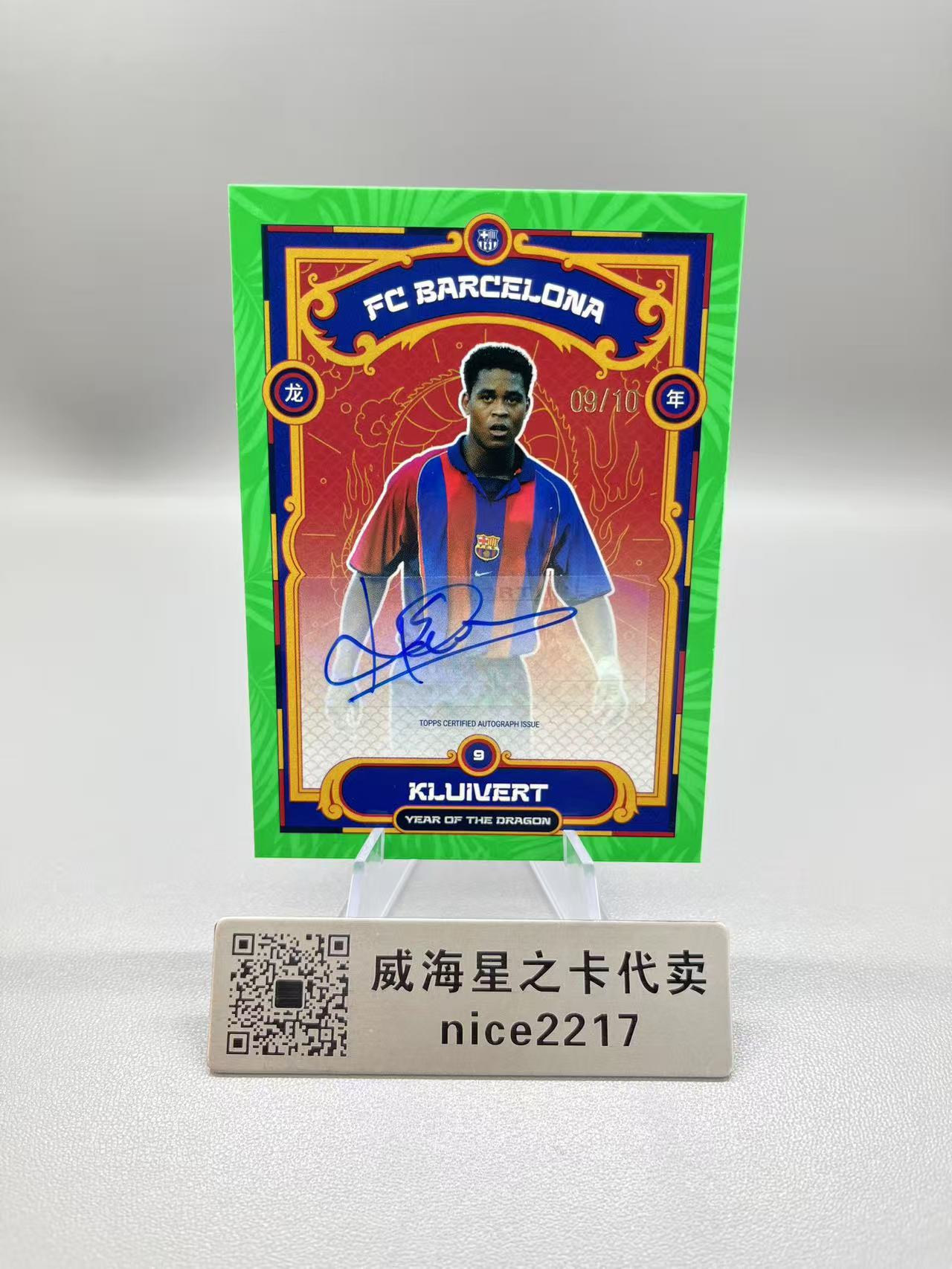 2024 Topps Year of the Dragon China Kluivert 【威海星之卡】西甲 巴萨 巴塞罗那 克鲁伊维特 佩尼亚 巴萨龙年队盒 10编 签字 绿折折射 贴签 瑕疵图君2