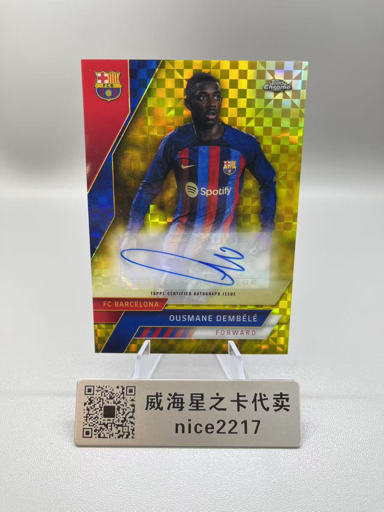 2023 Topps Chrome Ousmane Dembélé 【威海星之卡】TC 西甲 巴萨 巴塞罗那 登贝莱 12/99编 签字 金格子折 金棋盘折 金折 折射 贴签 瑕疵图君8