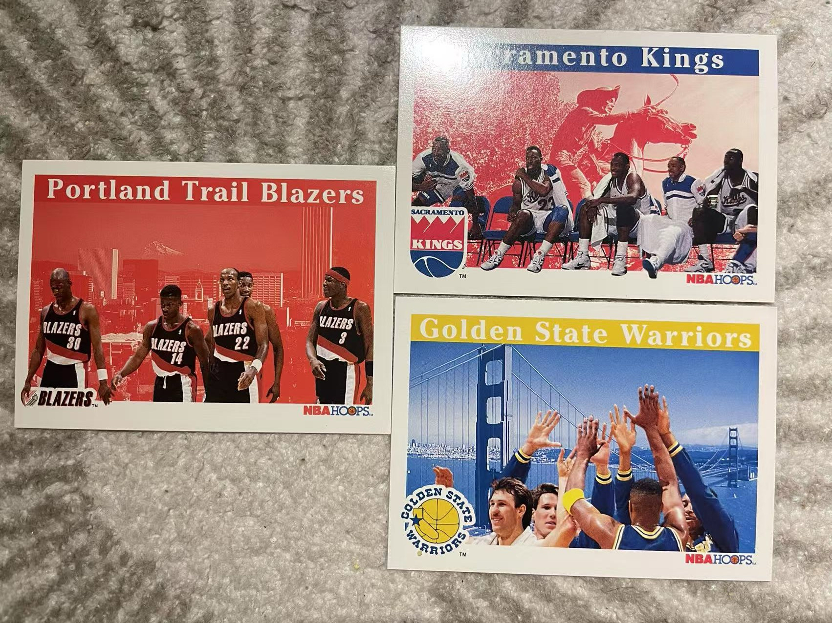 1992 SkyBox Americana Sacramento Kings 1992年当年的球队首发五虎 开拓者➕勇士➕国王 非常稀有 一共3张打包💗记录经典 值得珍藏 投资升值 卡品完美💗