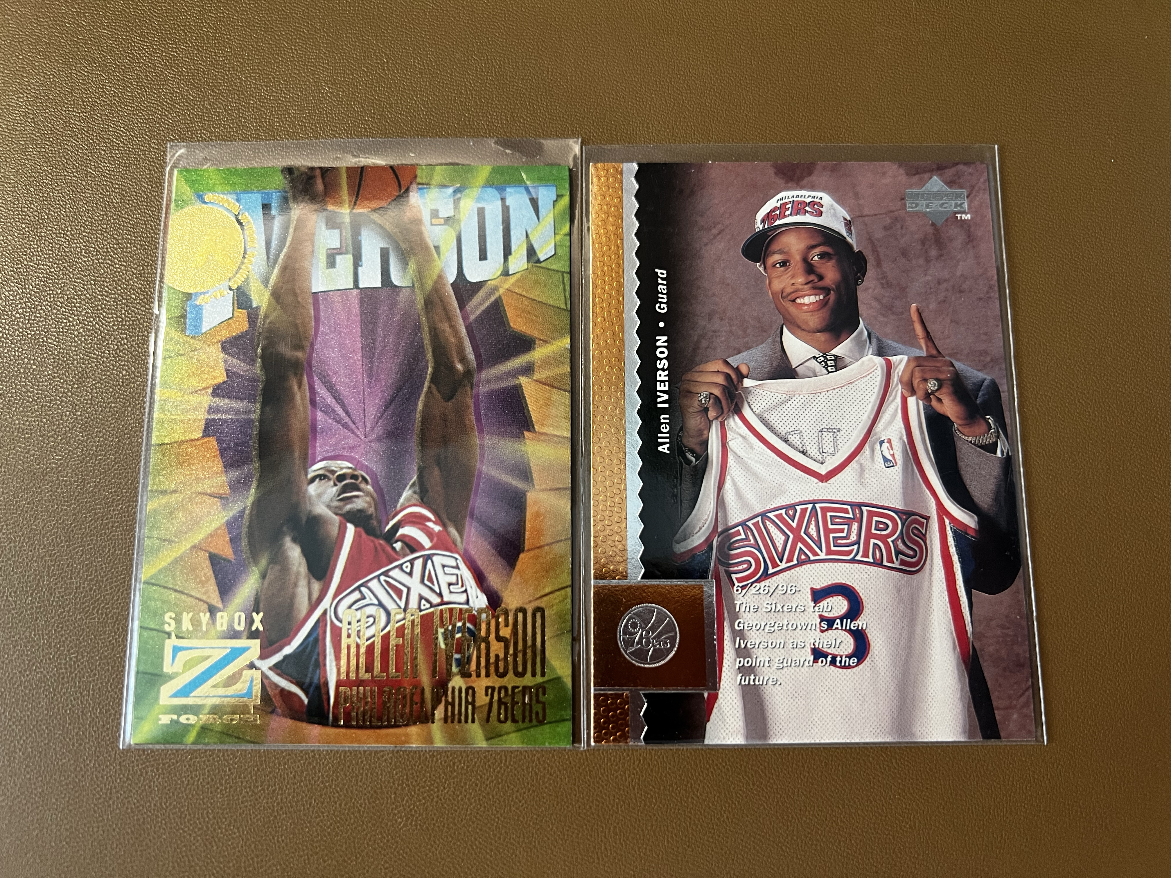 1996-97 SkyBox Z Force Allen Iverson RC Lot*2,阿伦艾佛森,AI答案新秀卡,96黄金一代状元秀,经典UD两张打包,扣篮选图爆炸设计,科比同时代球星卡已绝版!
