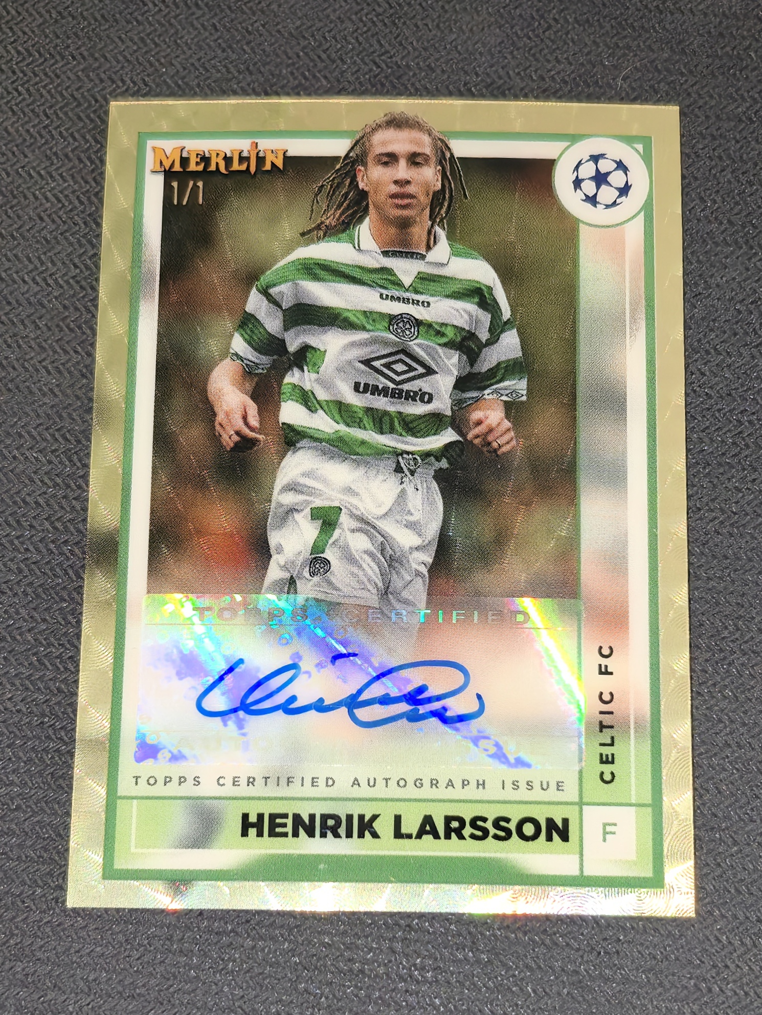 2023 Topps Merlin chrome Henrik Larsson 【 亨里克 拉尔森 限量1/1编 one of one 爆金折射 梅林 签字卡 签名卡 瑞典传奇 凯尔特人名宿 品相如图