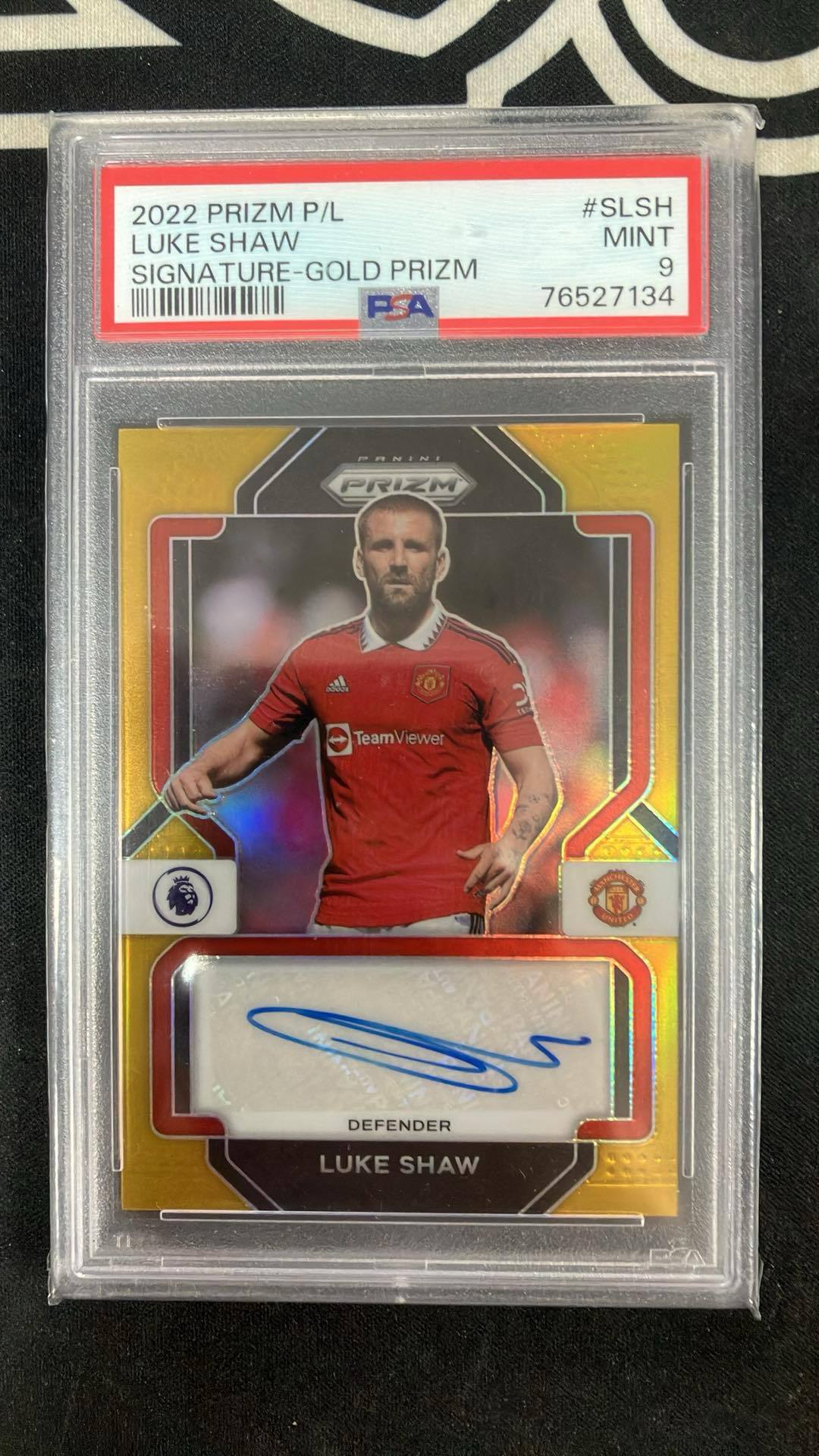 2022-23 Panini Prizm Luke Shaw 英超PZ 曼联 卢克 肖 02/10编 签字 金折 PSA评级 (CL)