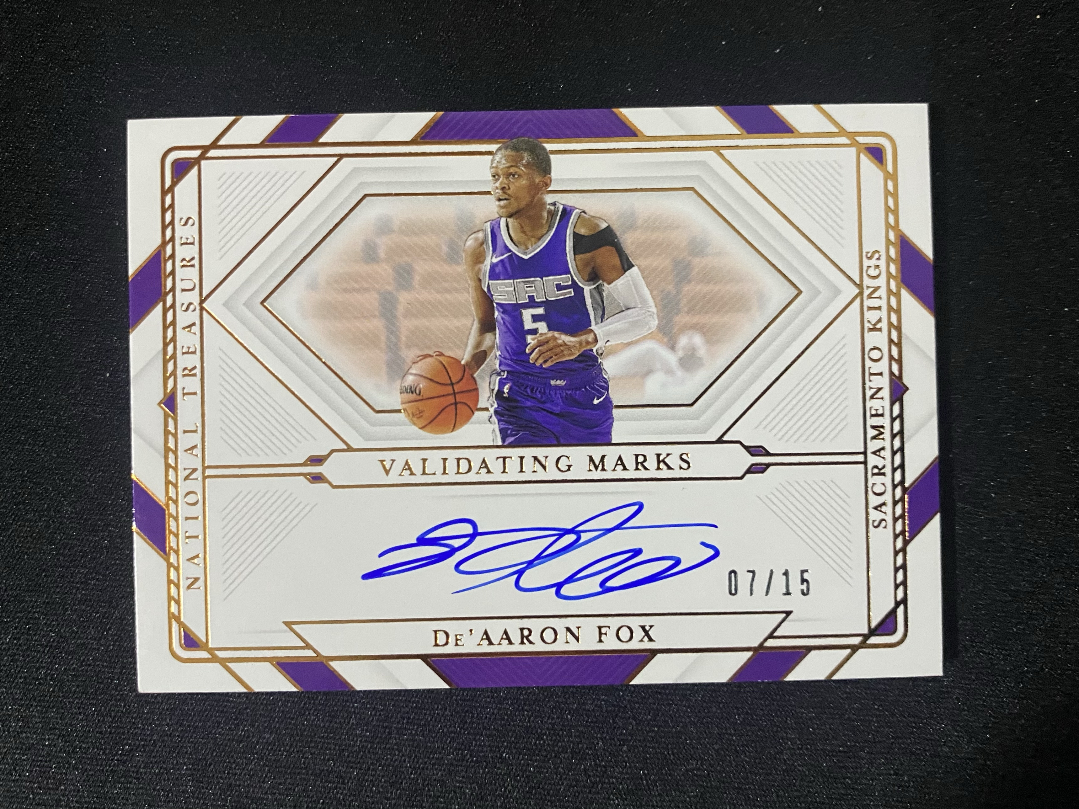 2020-21 Panini National Treasures De'Aaron Fox 达龙 福克斯 签字 15编 卡签 国宝 小狐狸 当家球星 微瑕如图 收藏佳品