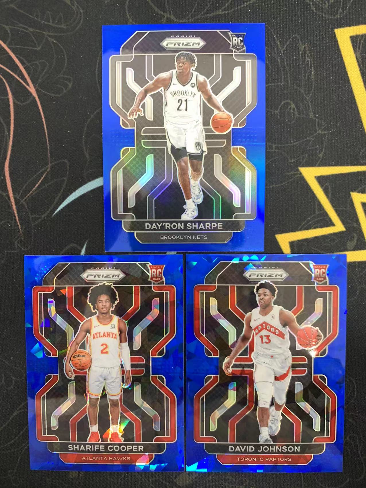 2021-22 Panini Prizm David Johnson RC LS7拍卖 PZ 大卫 约翰逊 / 沙里费 库珀 125编 蓝碎冰折 / 戴龙 夏普 199编 蓝折 折射 三张打包 XP8