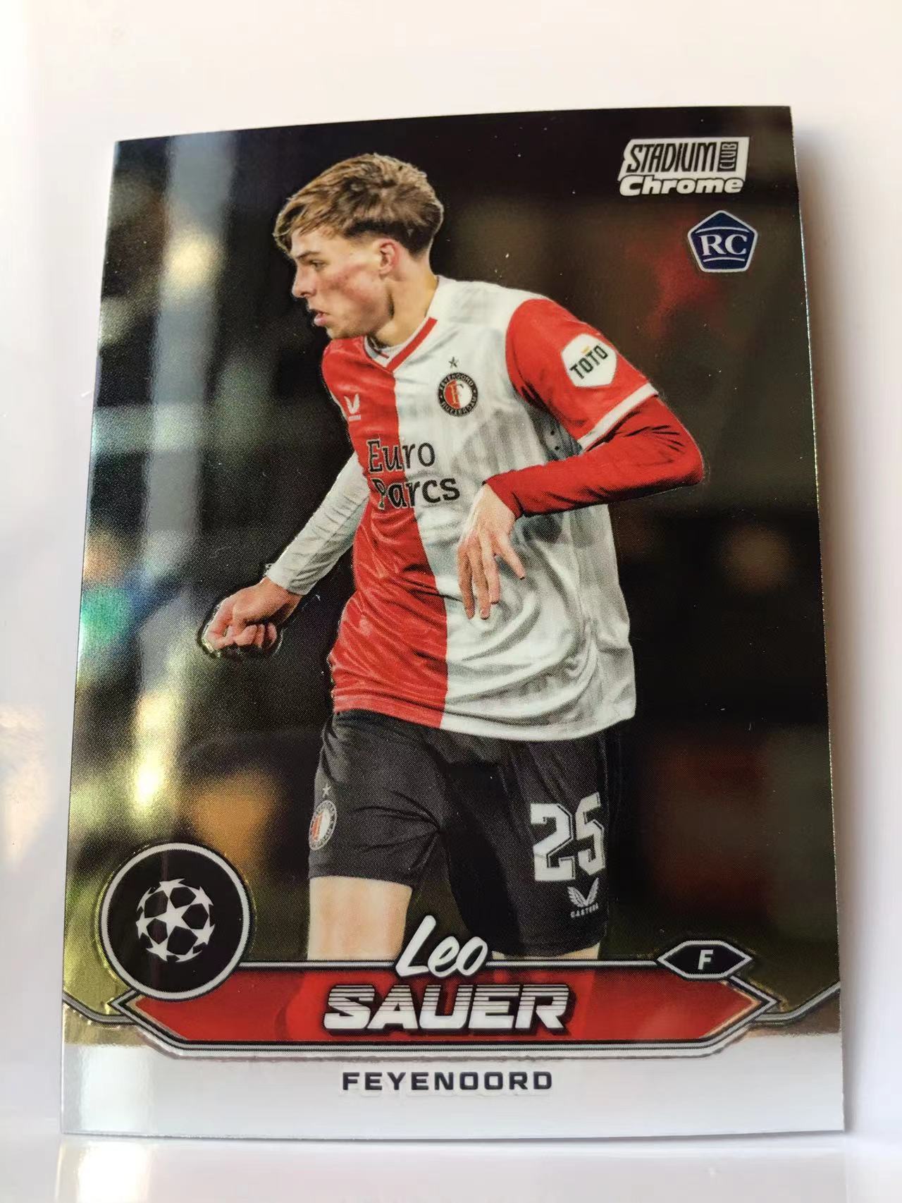 2024 Topps Stadium Club Chrome Leo Sauer 莱奥 绍尔 新秀 RC 费耶诺德 NO.95 欧冠竞技场BASE 卡品如图 Q008E