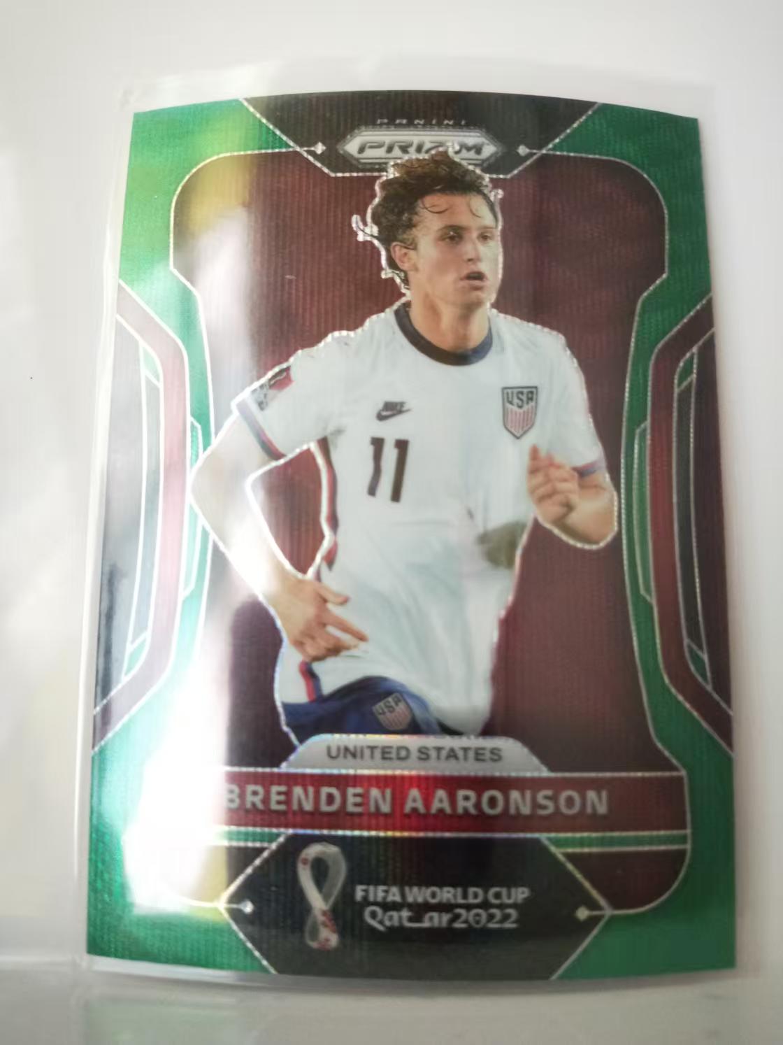 2022 Panini Prizm Brenden Aaronson 布伦登·阿伦森 美国 绿波纹折 卡塔尔世界杯PZ 折射 卡品如图 Q008W