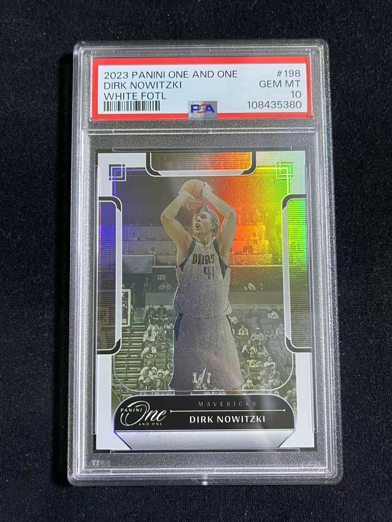 【幸运壹编壹代拍-DK】2023-24 One And One 独行侠 德国战车 诺天王 德克 诺维斯基 诺维茨基 Dirk Nowitzki 1/7编 首编 先行独占 白折 折射 稀有 PSA10