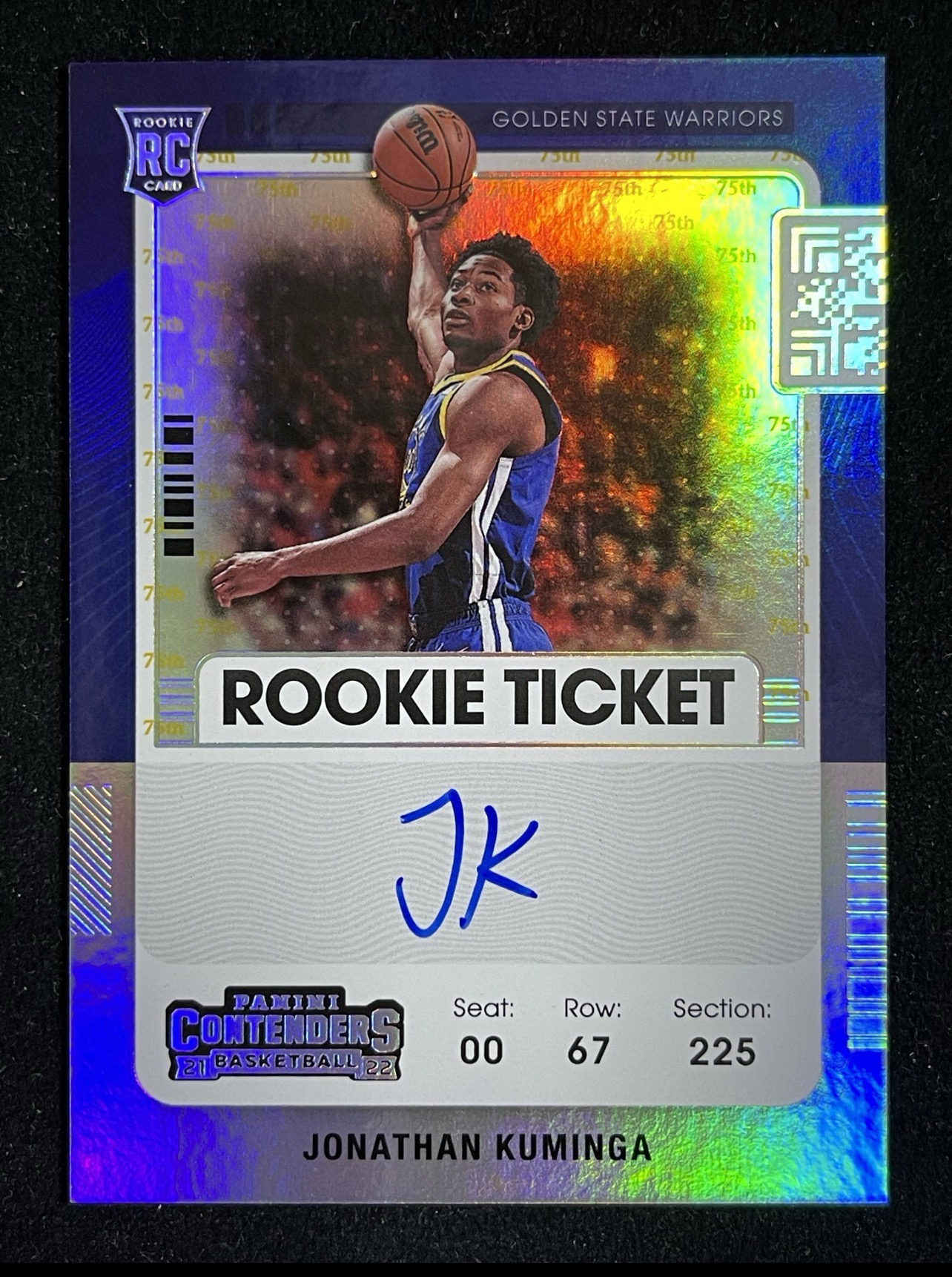 2021-22 Panini Contenders 球票 新秀RC 勇士 库明加 Jonathan Kuminga 75周年大比例 银折 折射 签字 卡签 品相见图
