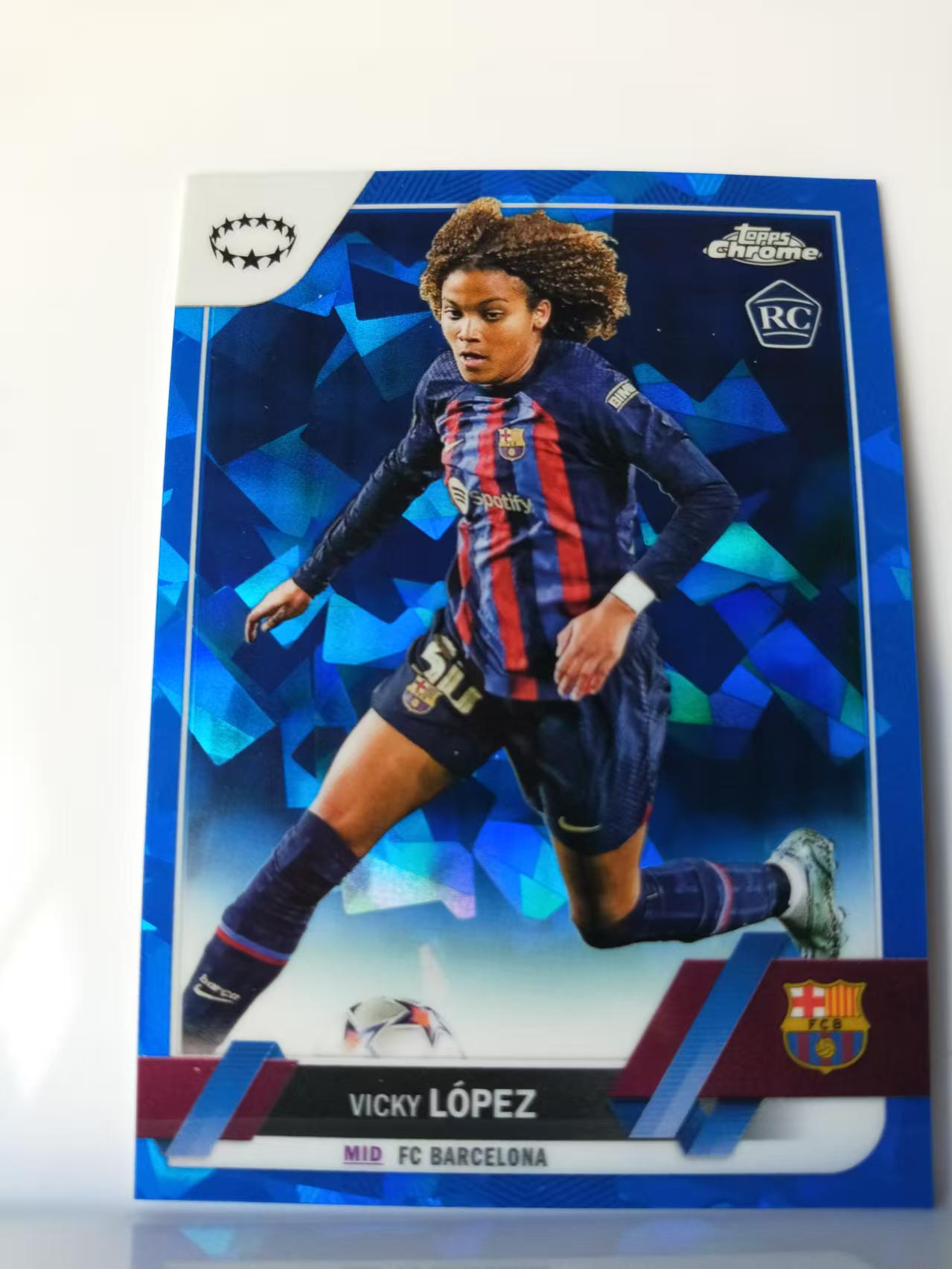 2023 Topps Chrome vicky lopez 维基洛佩斯 新秀 RC 巴萨 欧冠蓝宝石 女足 蓝碎冰折 卡品如图 C004A