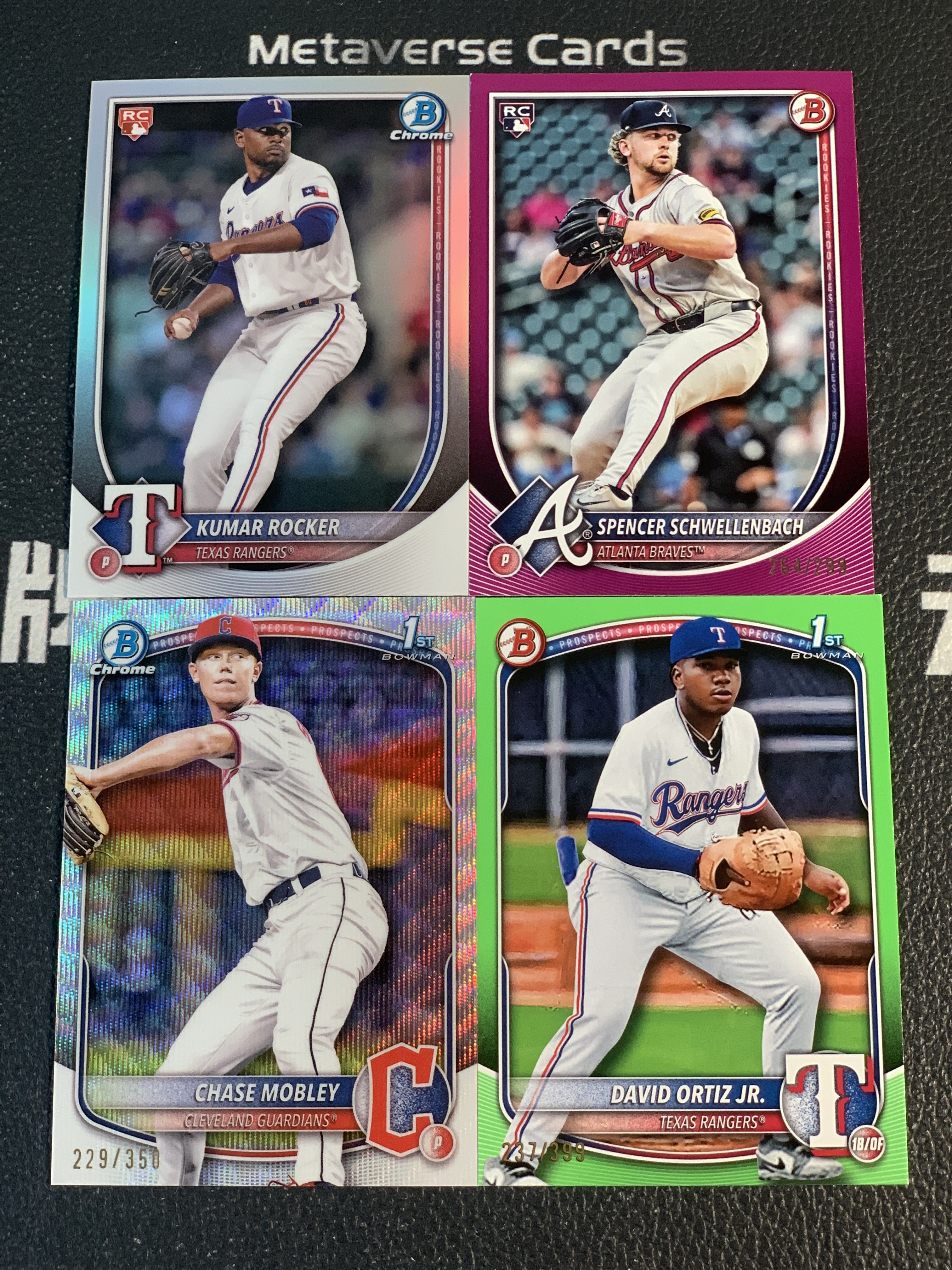 【元宇宙拍卖】垂柳树148:2025 Topps Bowman Chrome 棒球 库马尔 罗克 新秀RC 红标 银折 蔡斯 莫布利 1st 波纹折 /350编 史维伦巴赫 新秀RC 紫平行 /299编 4张打包lot