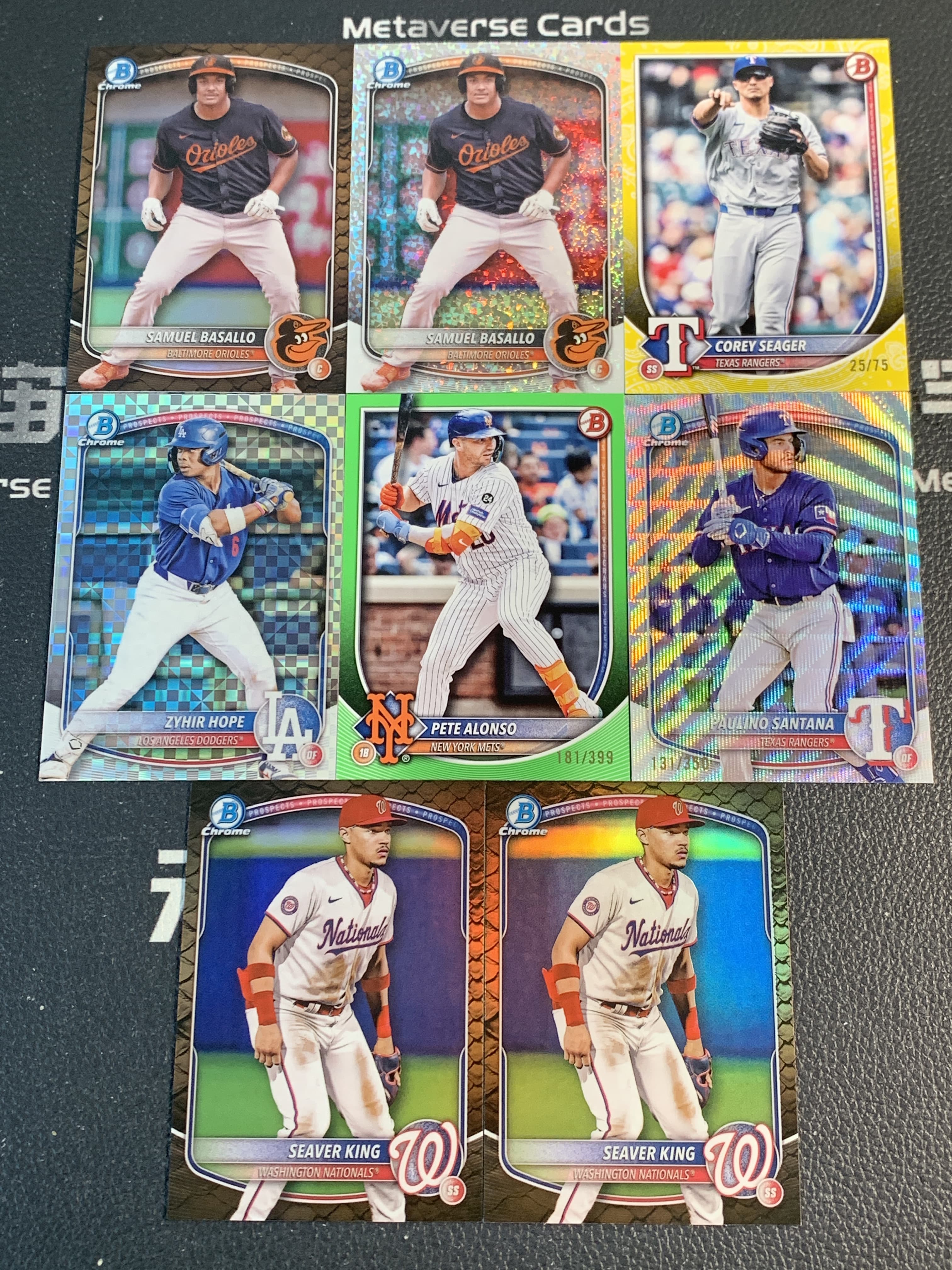 【元宇宙拍卖】垂柳树151:2025 Topps Bowman Chrome 棒球 萨缪尔 巴萨罗 科里 西格 扎伊尔 霍普 皮特 阿隆索 蛇皮折 碎钻折 黄折 棋盘折 绿折 波纹折 /75/350/399编 8张打包lot
