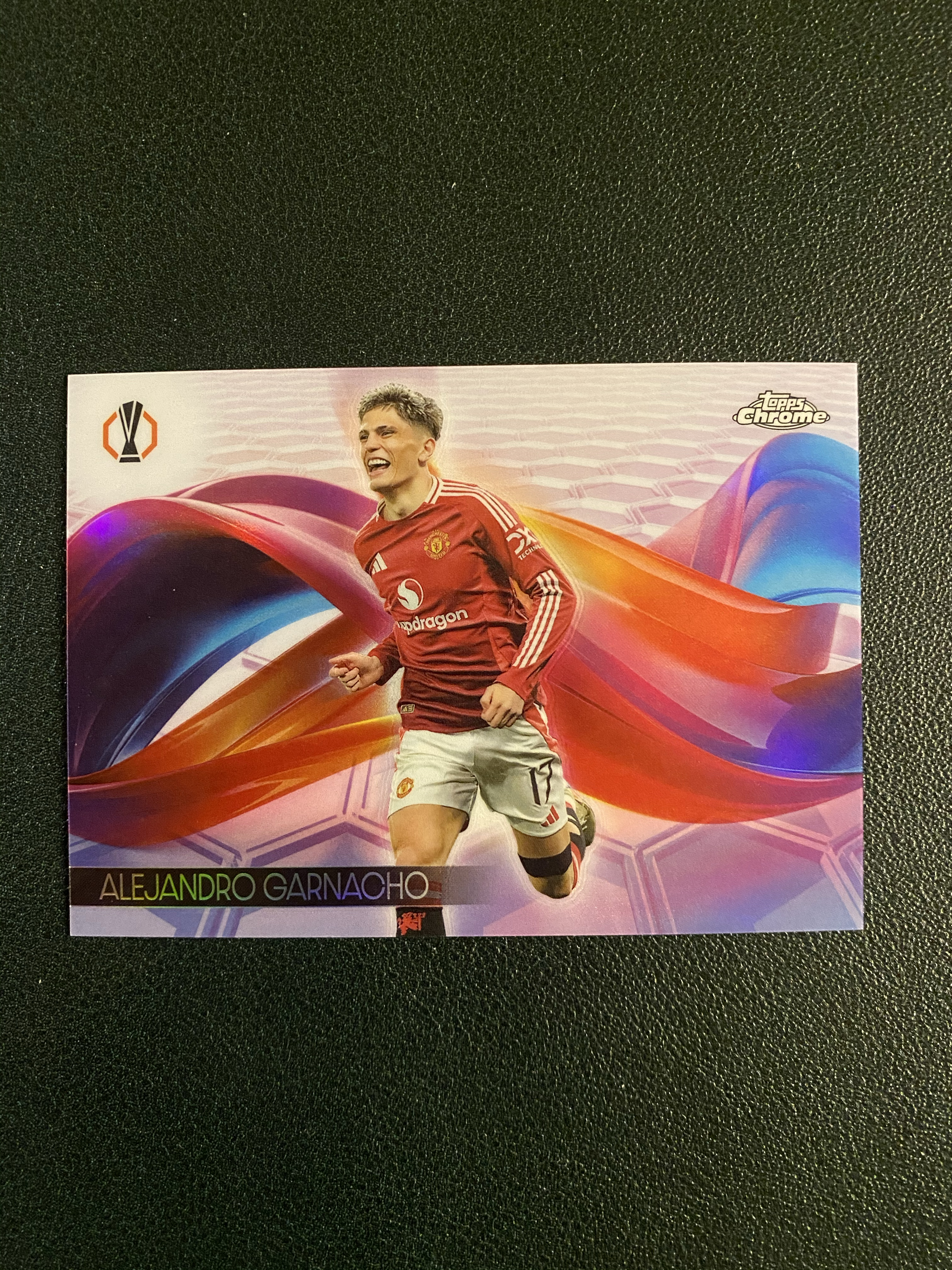 2024-25 Topps Chrome Alejandro Garnacho 欧冠 加纳乔 螺旋特卡 彩带 超大比例 SSP 阿根廷 曼联 梅西队友 C罗迷弟 欧冠 红魔 卡品不错 可博PSA高分