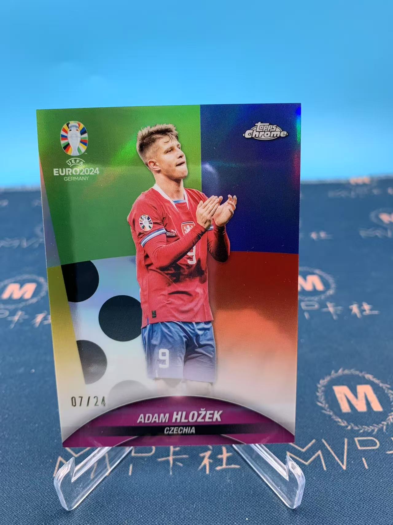 2024 Topps 欧洲杯 Chrome Adam Hlozek 【MVP拍卖】 7/24编 捷克 赫洛热克 风格折射特卡 霍芬海姆前锋 勒沃库森 值得收藏 无畏
