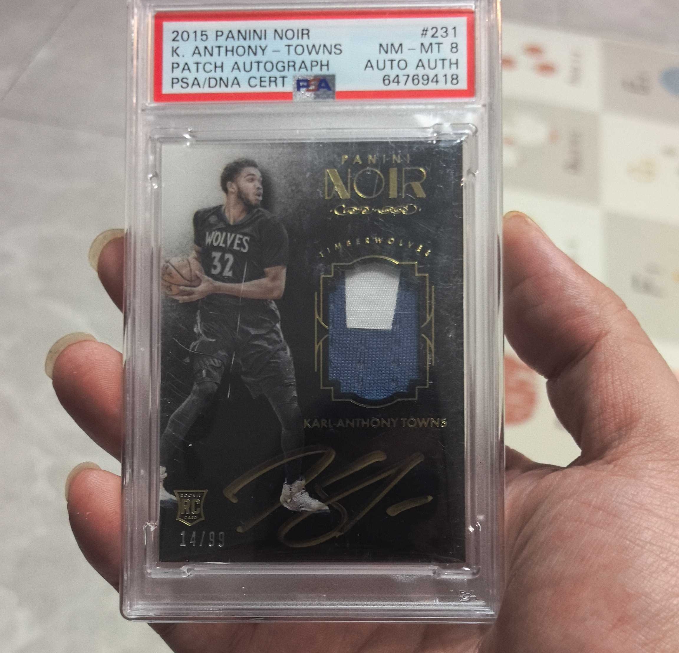 2015-16 Panini Noir Karl Anthony Towns RC NOIR 森林狼当家 新秀 RC 唐斯 RPA 球衣物料卡签 签字 99编 金笔卡签 PSA 8分 好人好卡 收藏必备