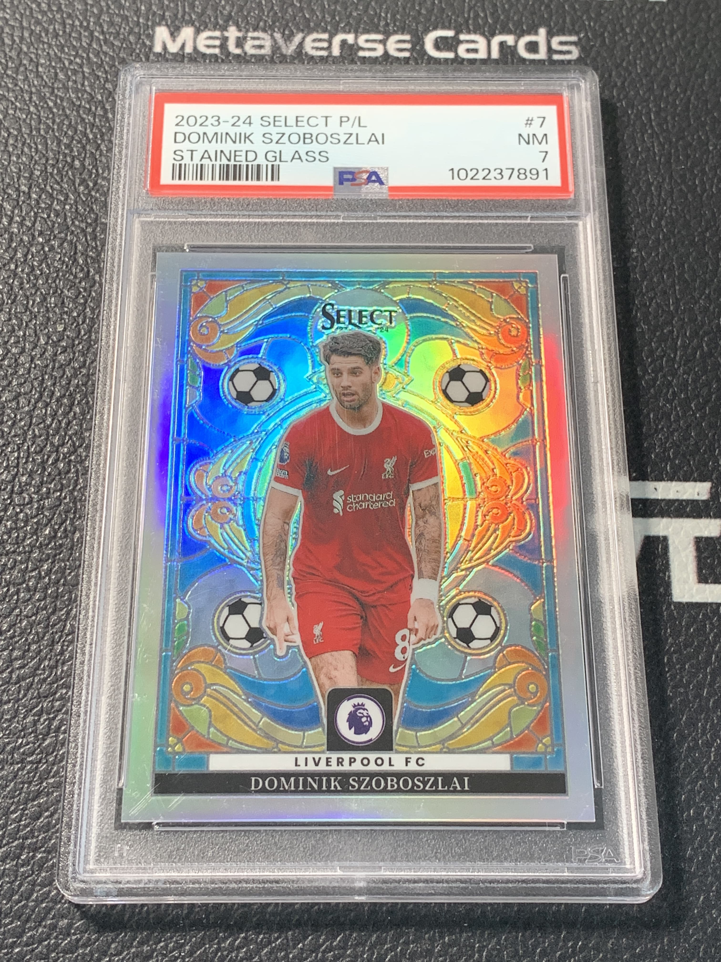 【元宇宙拍卖】K15-009:2023-24 Select EPL Dominik Szoboszlai 利物浦 匈牙利 索博斯洛伊 英超SE Stained Glass 大比例 折射 窗花 教堂特卡 箱货 凑套必备 PSA评级7分