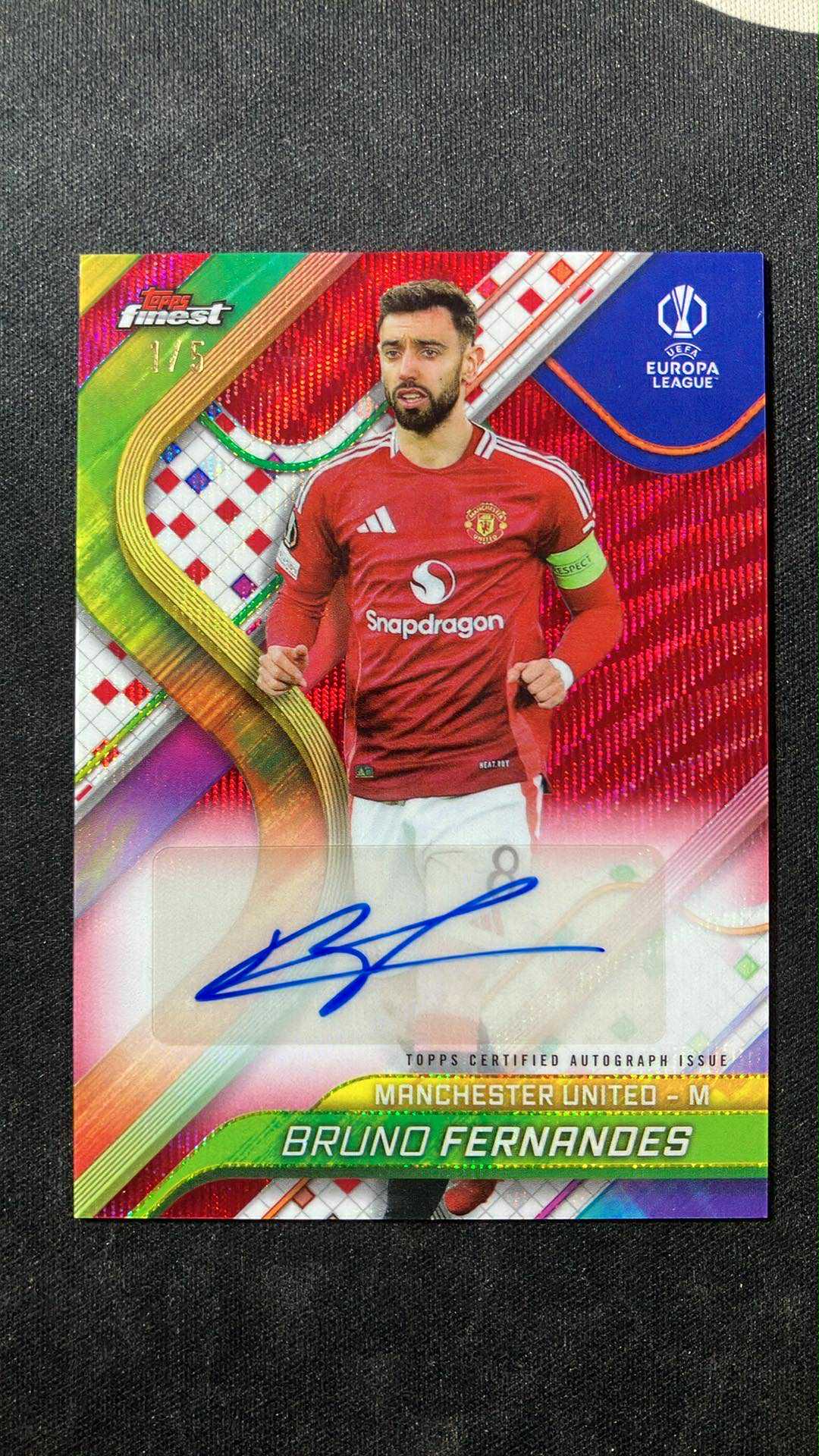 2024-25 Topps Finest Bruno Fernandes 欧冠 曼联 布鲁诺费尔南德斯 1/5编 首编 签字 红波纹折 瑕疵看圖 (TH)