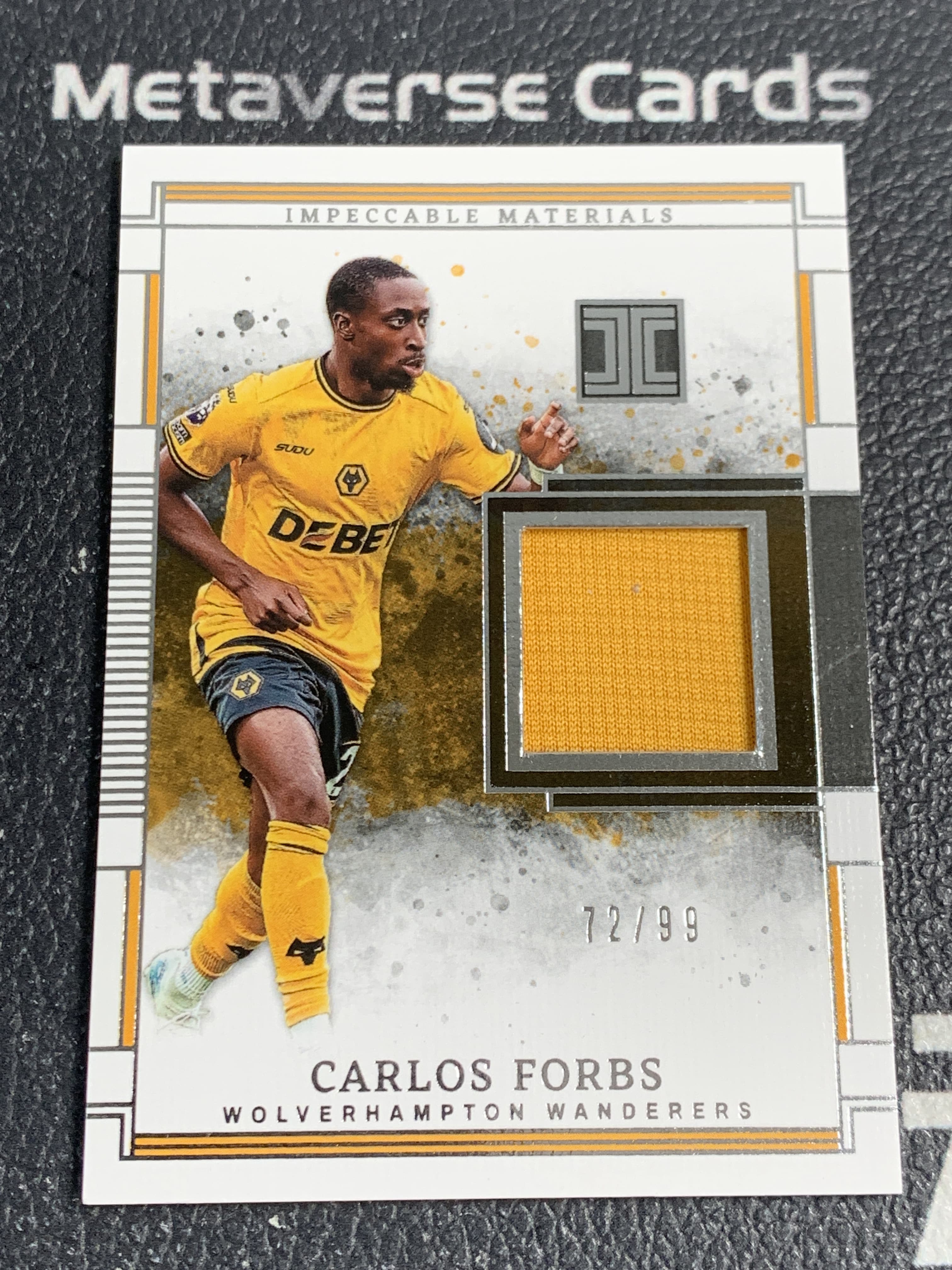 【元宇宙拍卖】国风赵哥144:2024-25 Panini Impeccable Carlos Forbs 小真金 英超 狼队 卡洛斯 福布斯 球衣 72/99编 微瑕如图 专收收藏必备