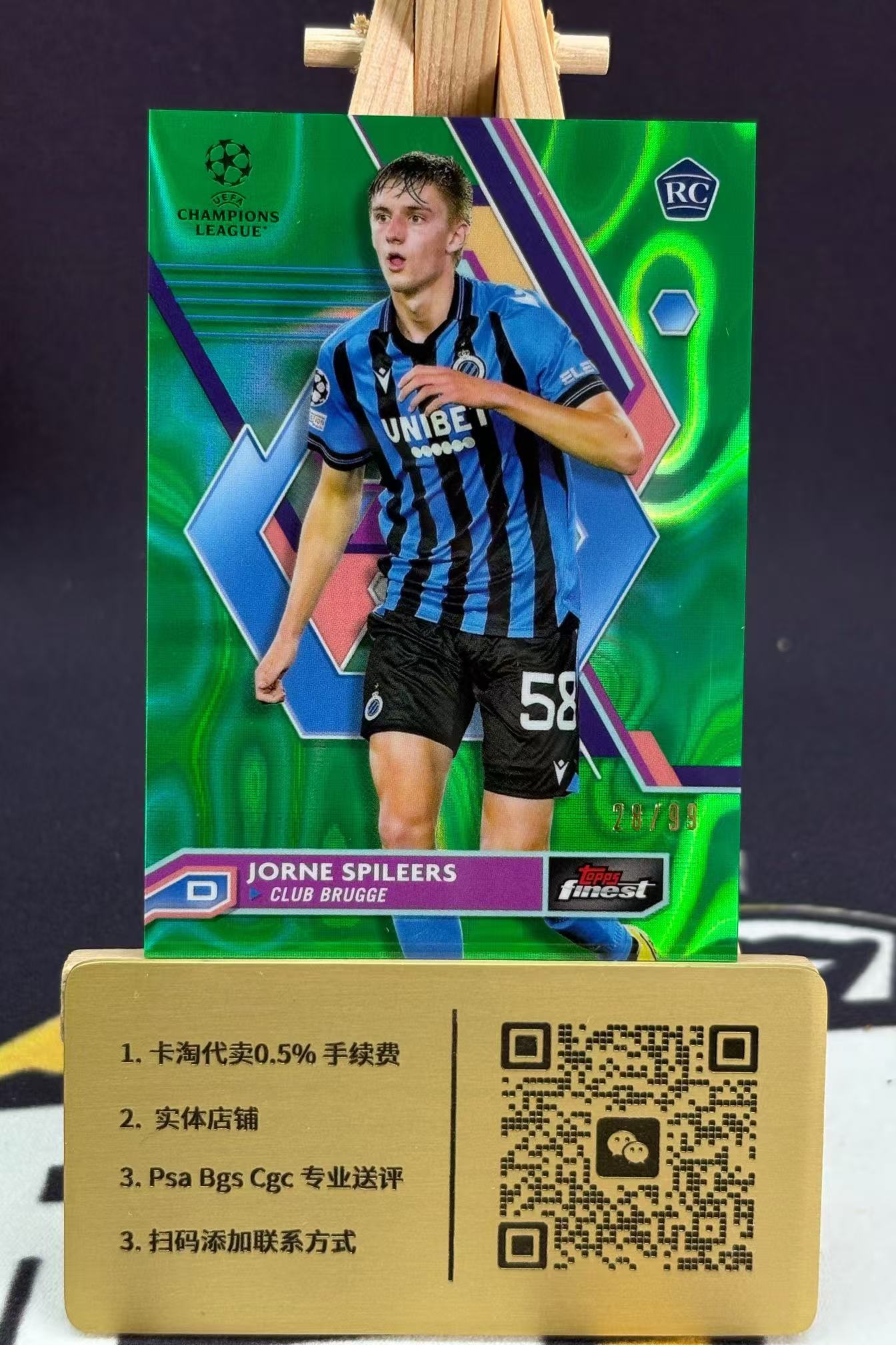 2023 【欣欣代卖预付80%】 topps finest JORNE SPILEERS RC 欧冠Finest 布鲁日 斯皮莱斯 新秀RC 绿熔岩折 折射 /99编 卡品如图 王老师