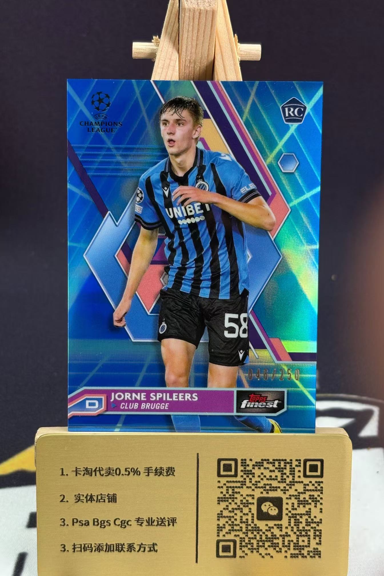 2023 【欣欣代卖预付80%】 topps finest JORNE SPILEERS RC 欧冠Finest 布鲁日 斯皮莱斯 新秀RC 蓝折 折射 /250编 卡品如图 王老师