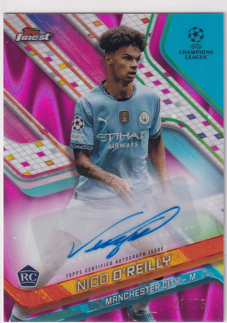 【thebighit】不累计007.24-25 Topps Finest 欧战 曼城 尼科·奥赖利 新秀 RC 签字 贴签 粉熔岩折 折射 75编