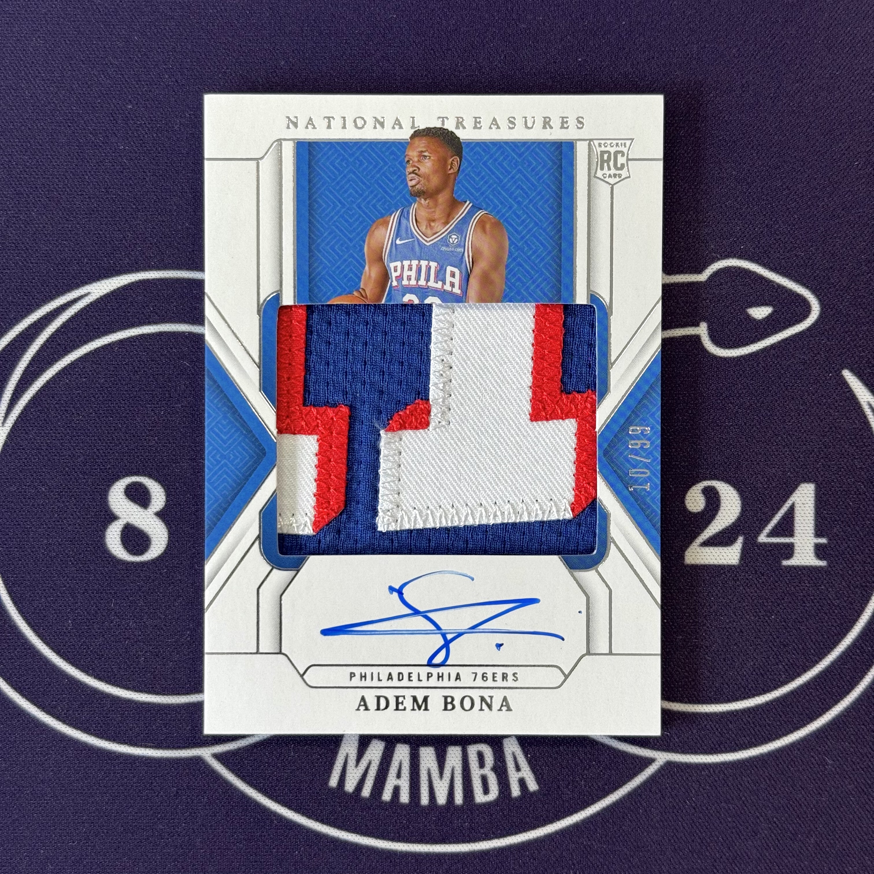 2024-25 Panini National Treasures Adem Bona RC 【824拍卖】国宝 76人 新秀RC 阿德姆 博纳 99编 正RPA 签字 卡签 球衣Patch 轻印小施