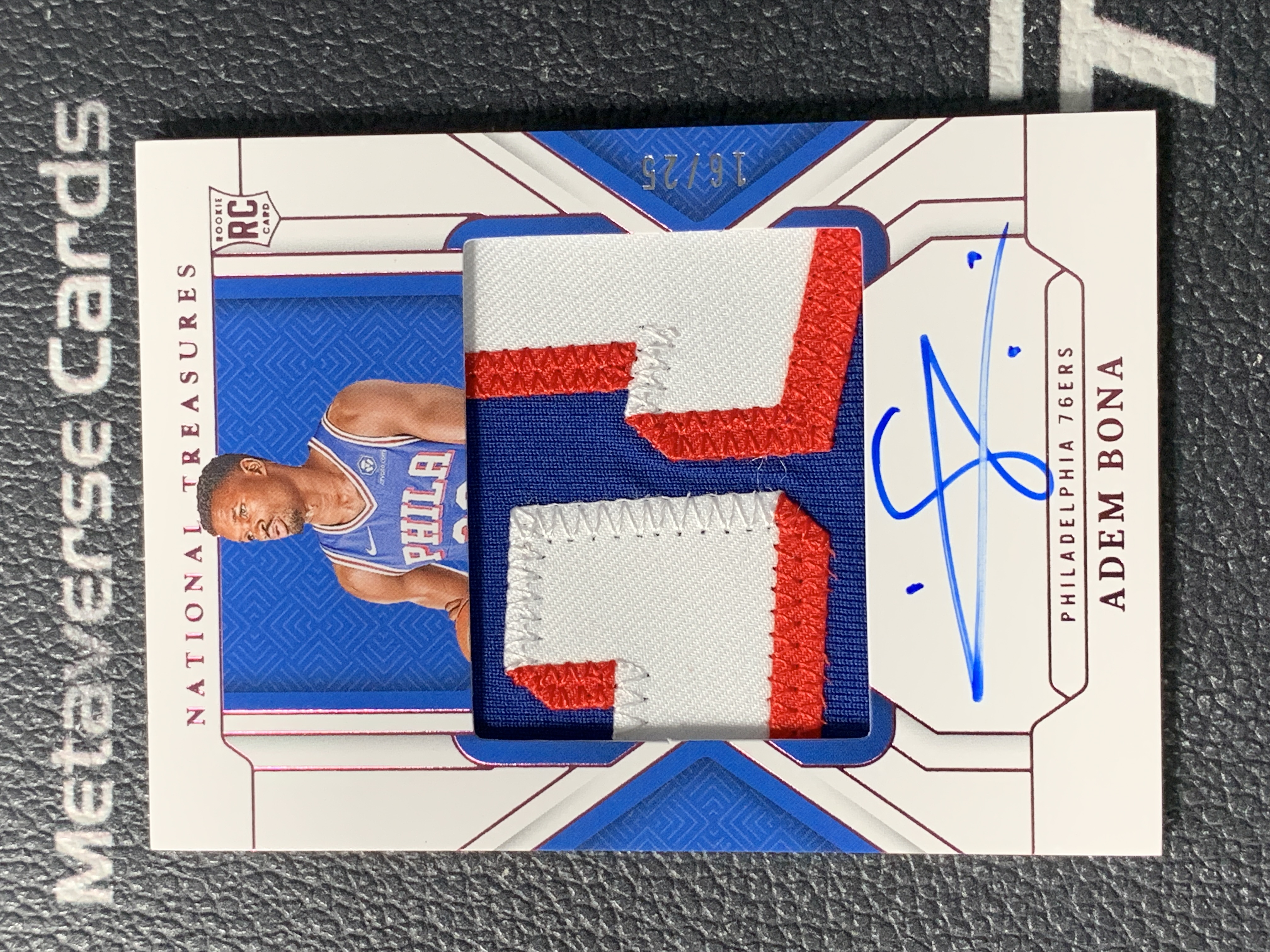 【元宇宙拍卖】D59-005:2024-25 Panini National Treasures Adem Bona 国宝 阿德姆 博纳 76人 RC 新秀 patch 签字 正rpa 超暴力满切字母 卡签 粉平行 16/25编 微瑕如图