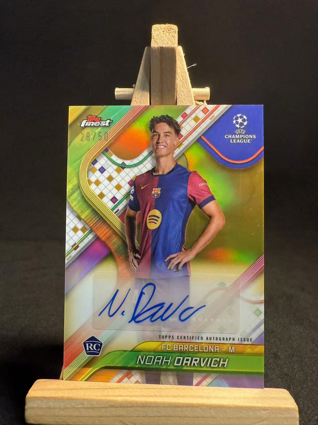 2025 Topps Finest noah darvich MHY 诺阿 达尔维奇 新秀 德国 巴萨 巴塞罗那 欧冠 金折 28/50编 折射 默认瑕疵 乐
