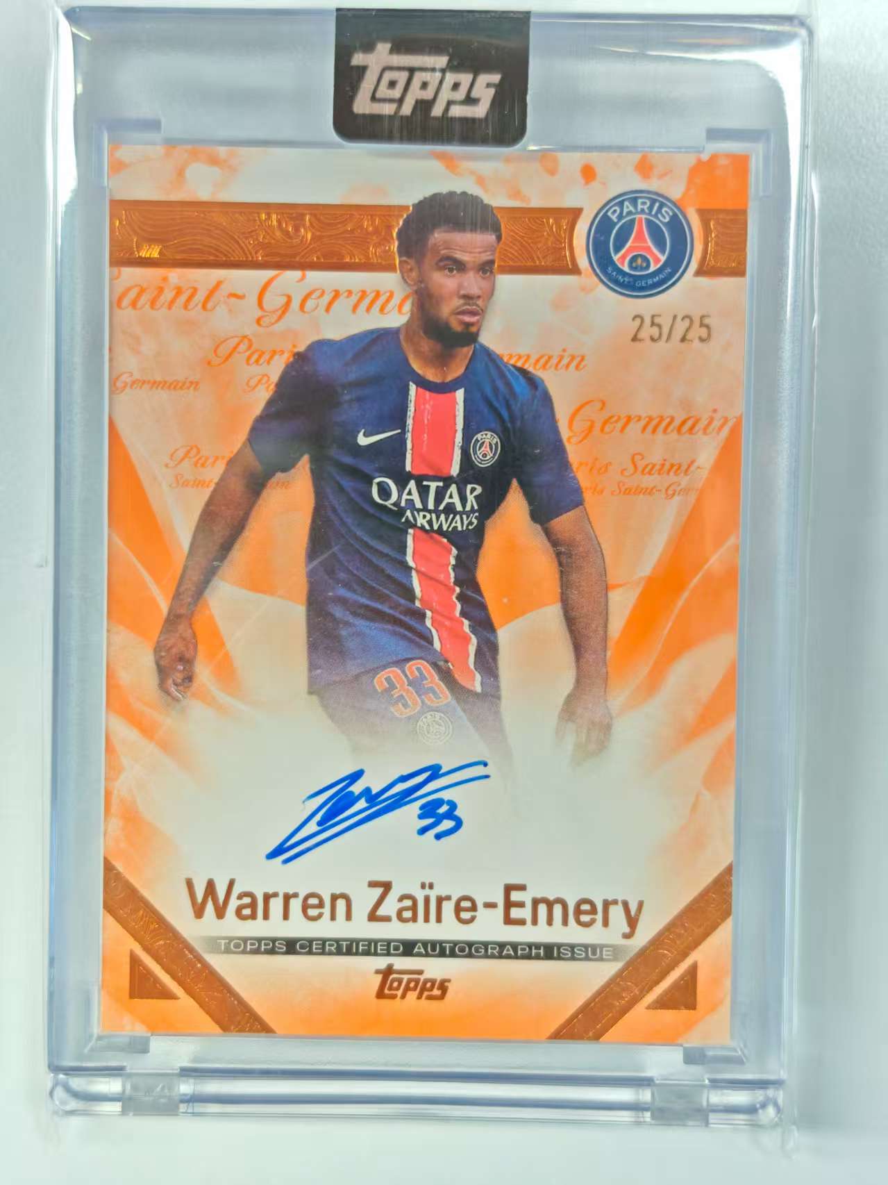 2025 Topps Exhibition Warren Zaire-Emery 大巴黎展览高端队盒 巴黎圣日耳曼 埃梅里 签字 卡签 橙折 25/25编 原封砖 尾编 未来核心