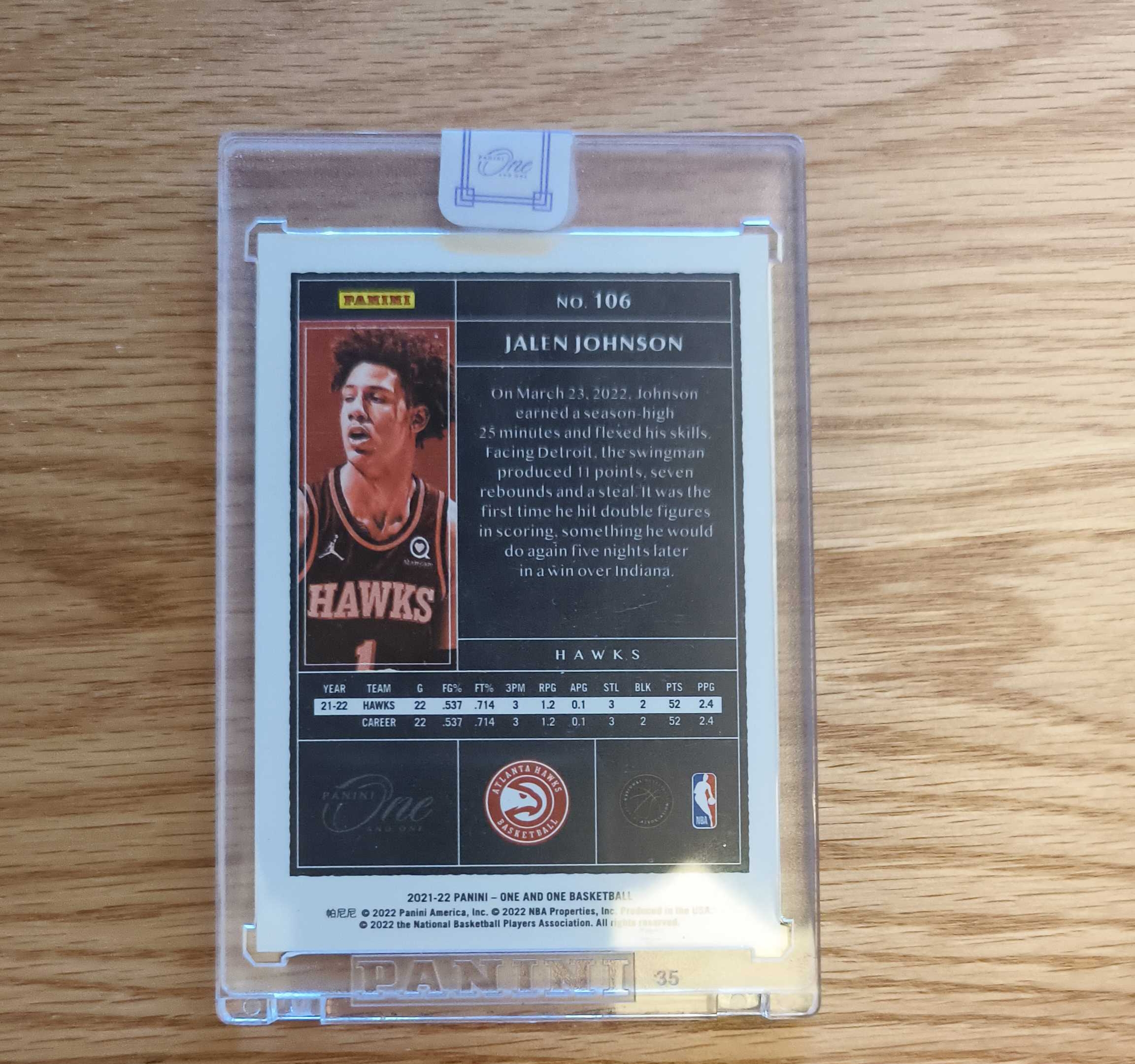 2021-22 Panini One and One Jalen Johnson RC 杰伦 约翰逊 新秀 one 15编 同背 原封砖
