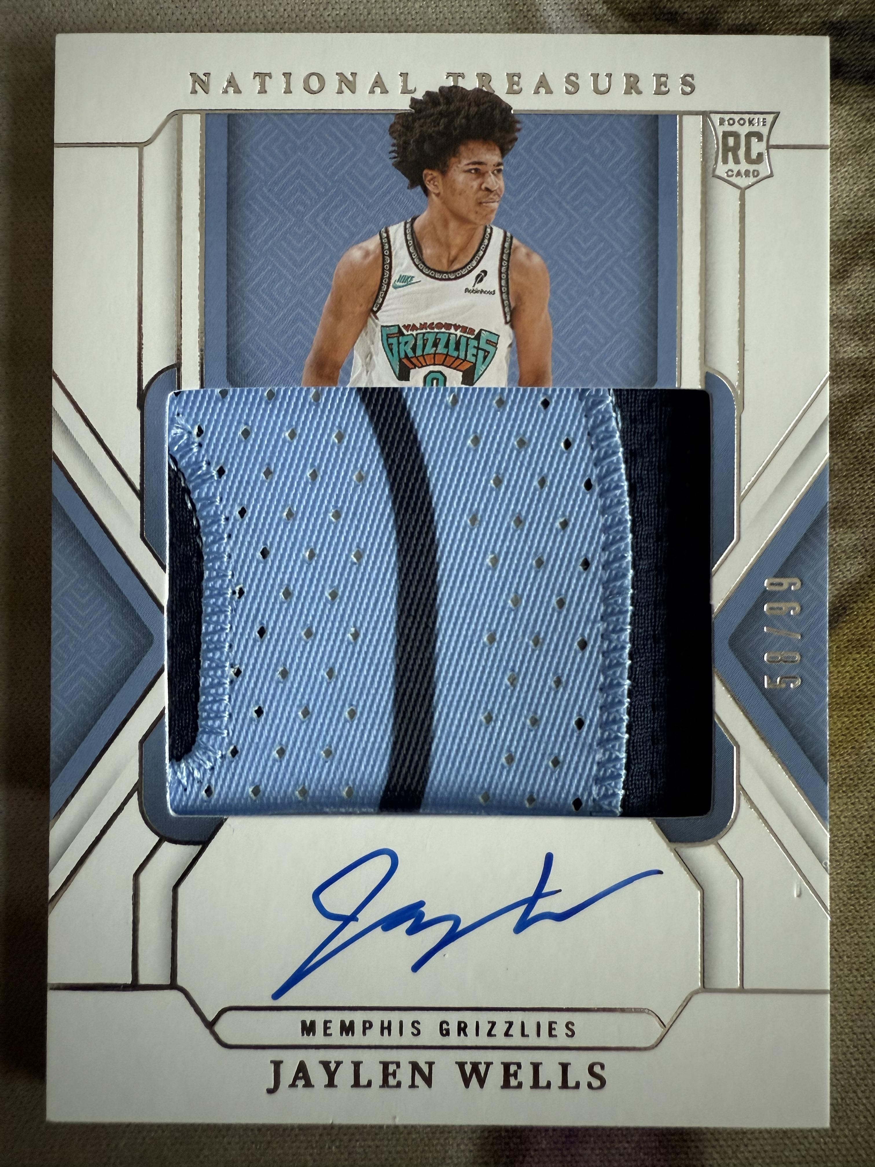 2024-25 Panini National Treasures Jaylen Wells RC 国宝 灰熊 杰伦 威尔斯 新秀 patch 签字 99编 正RPA 卡签 hit卡 切割暴力