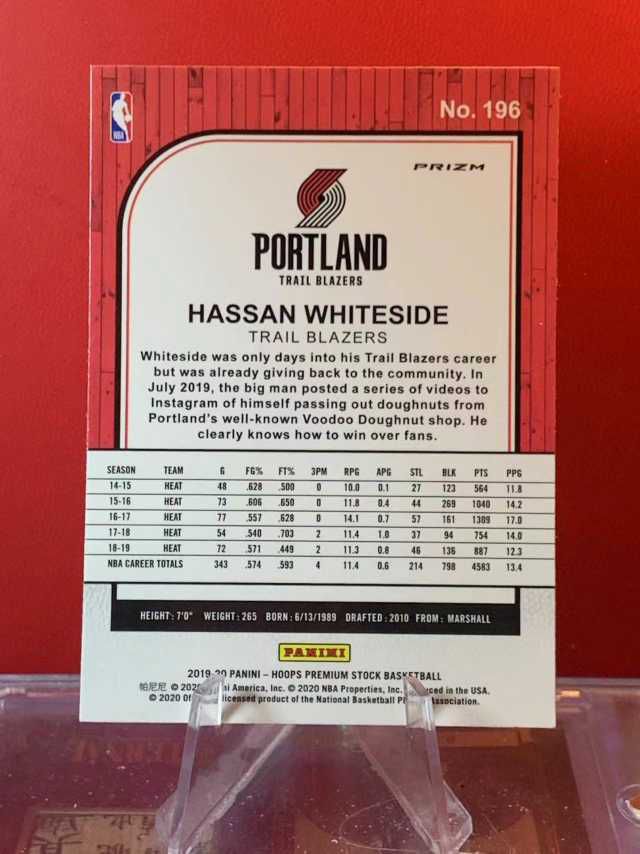 (老末代拍)D11 2019-20 Panini NBA Hoops Hassan Whiteside 哈桑 怀特塞德 开拓者  金丝镭射折 顺丰寄付 免费代拍 不保卡品
