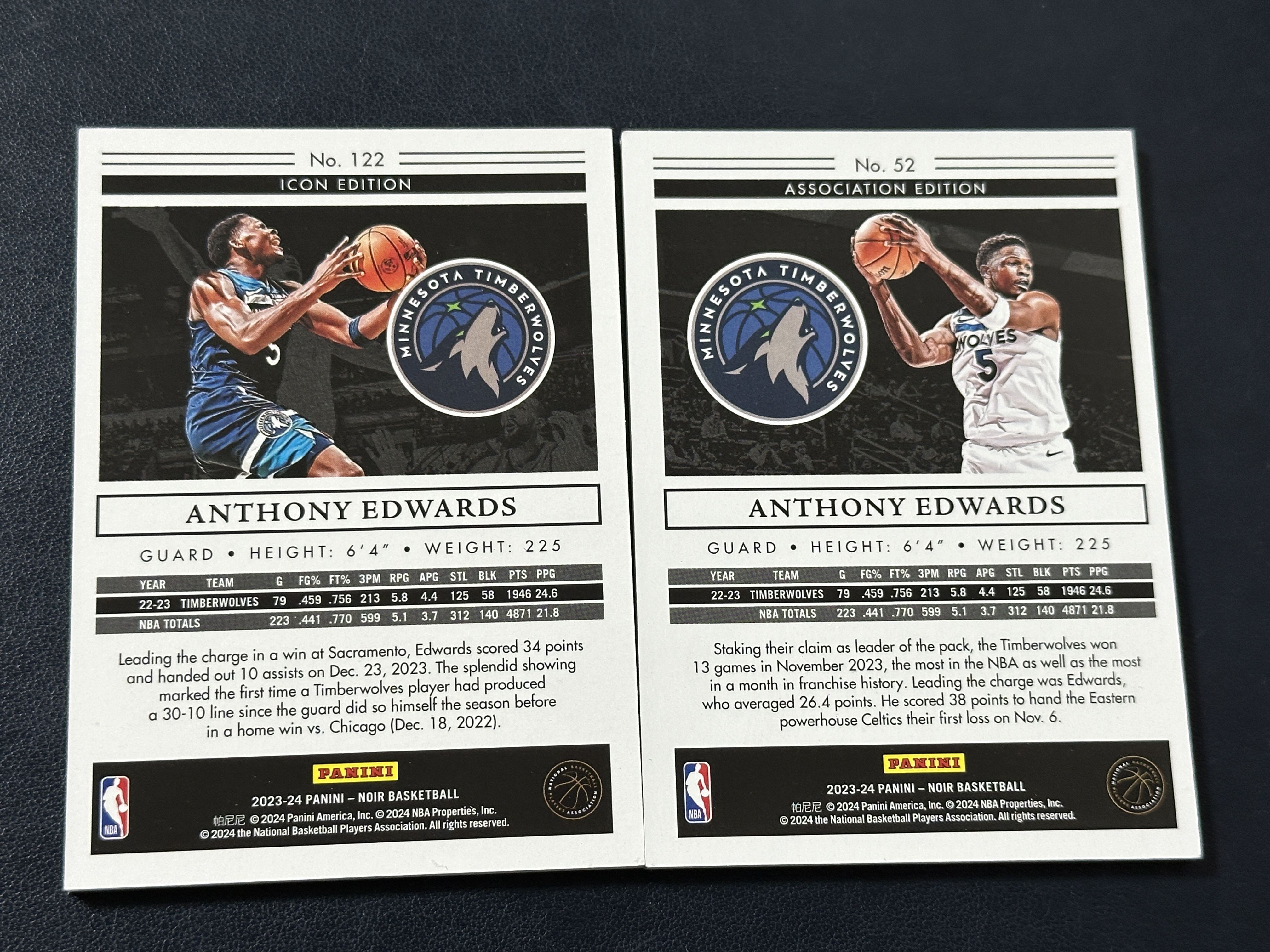 2023-24 Panini Noir Anthony Edwards 安东尼 爱德华兹 /99编 队徽 队标 team logo 全套 凑套 森林狼迪林厄姆小香浓队友