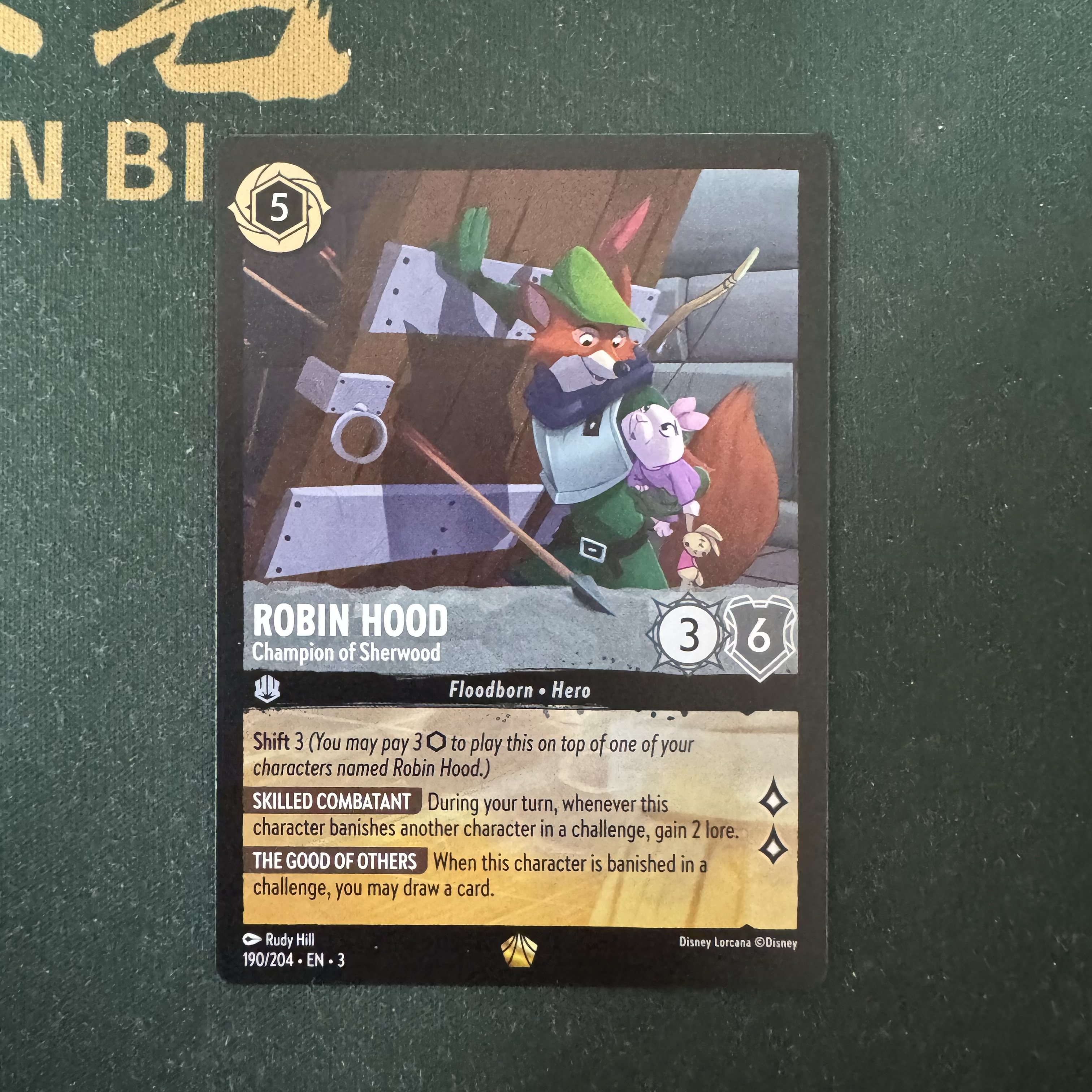 【十三笔】2024 DISNEY LORCANA 迪士尼 洛卡纳 美版 第三弹 传奇 L #190/204 罗宾汉 - 舍伍德的冠军 卡品如图(Jul)
