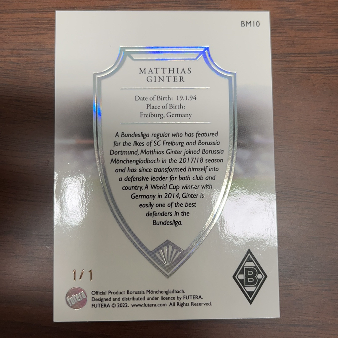 2022-23 Topps Futera Matthias Ginter 马蒂亚斯 金特尔 门兴格拉德巴赫时期 德甲 福特拉 1编1 1/1 1编 卡品如图