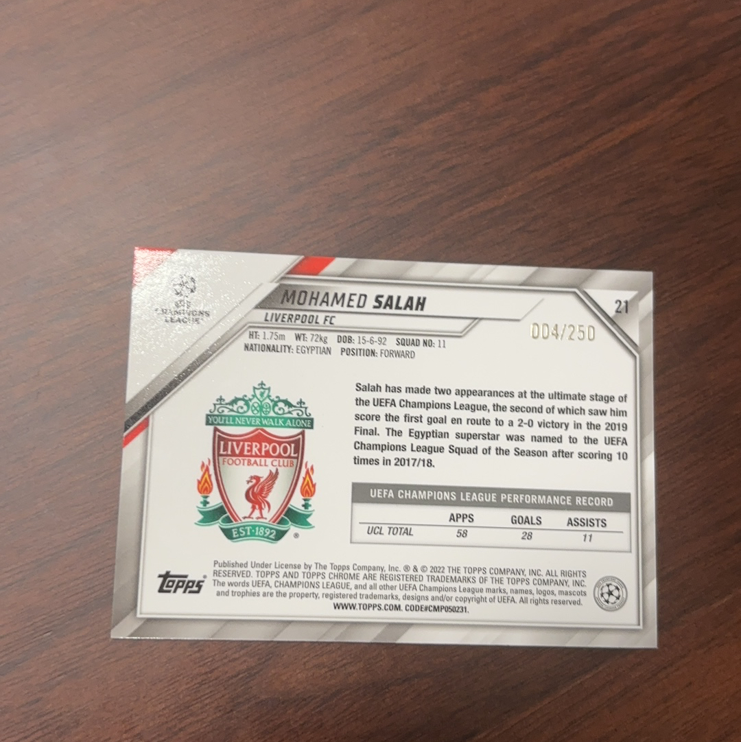 2022 Topps Chrome Mohamed Salah 2017 欧冠 利物浦 萨拉赫 250