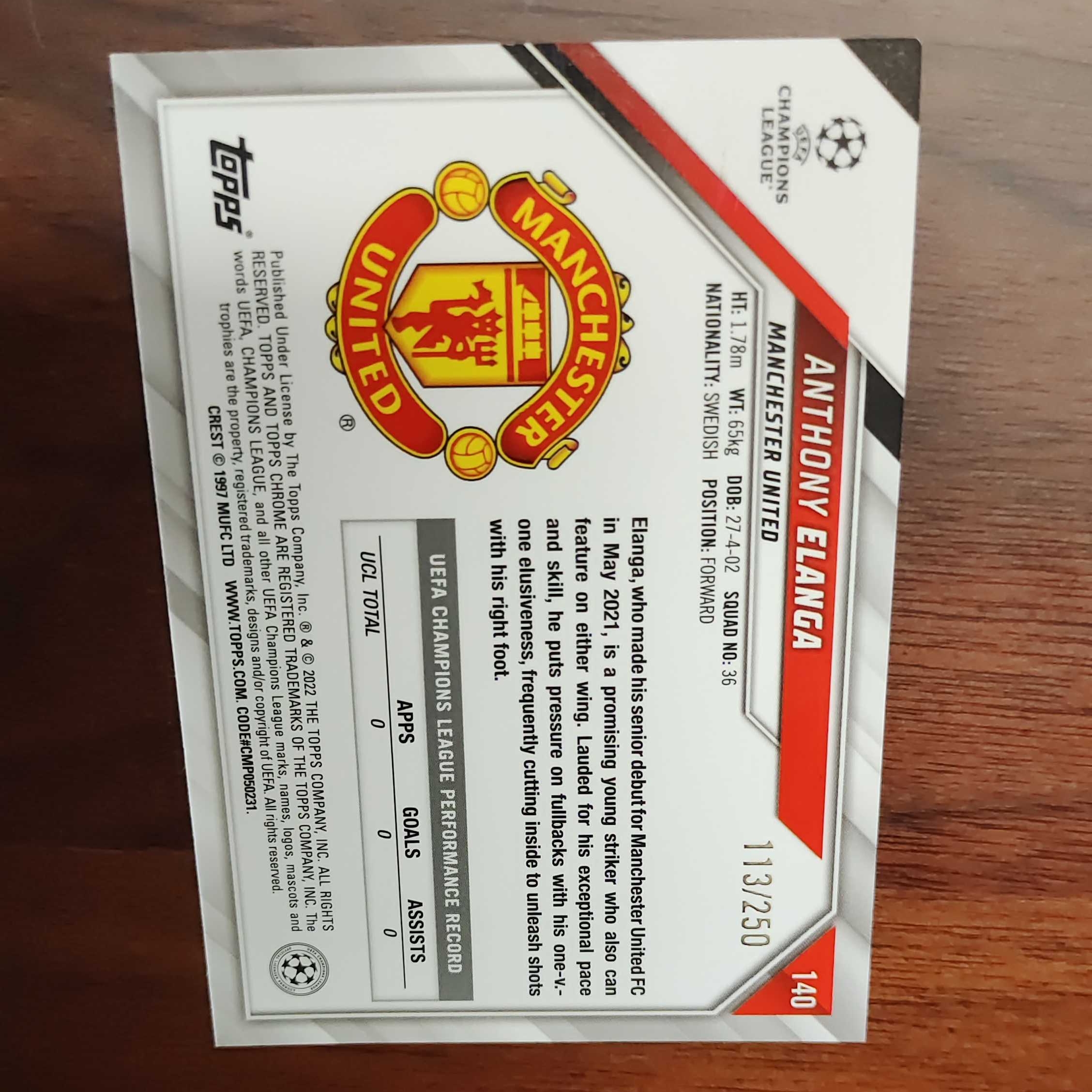 2021-22 Topps Chrome Anthony Elanga 欧冠TC 曼联 新秀RC 埃兰加 250编 紫碎点折