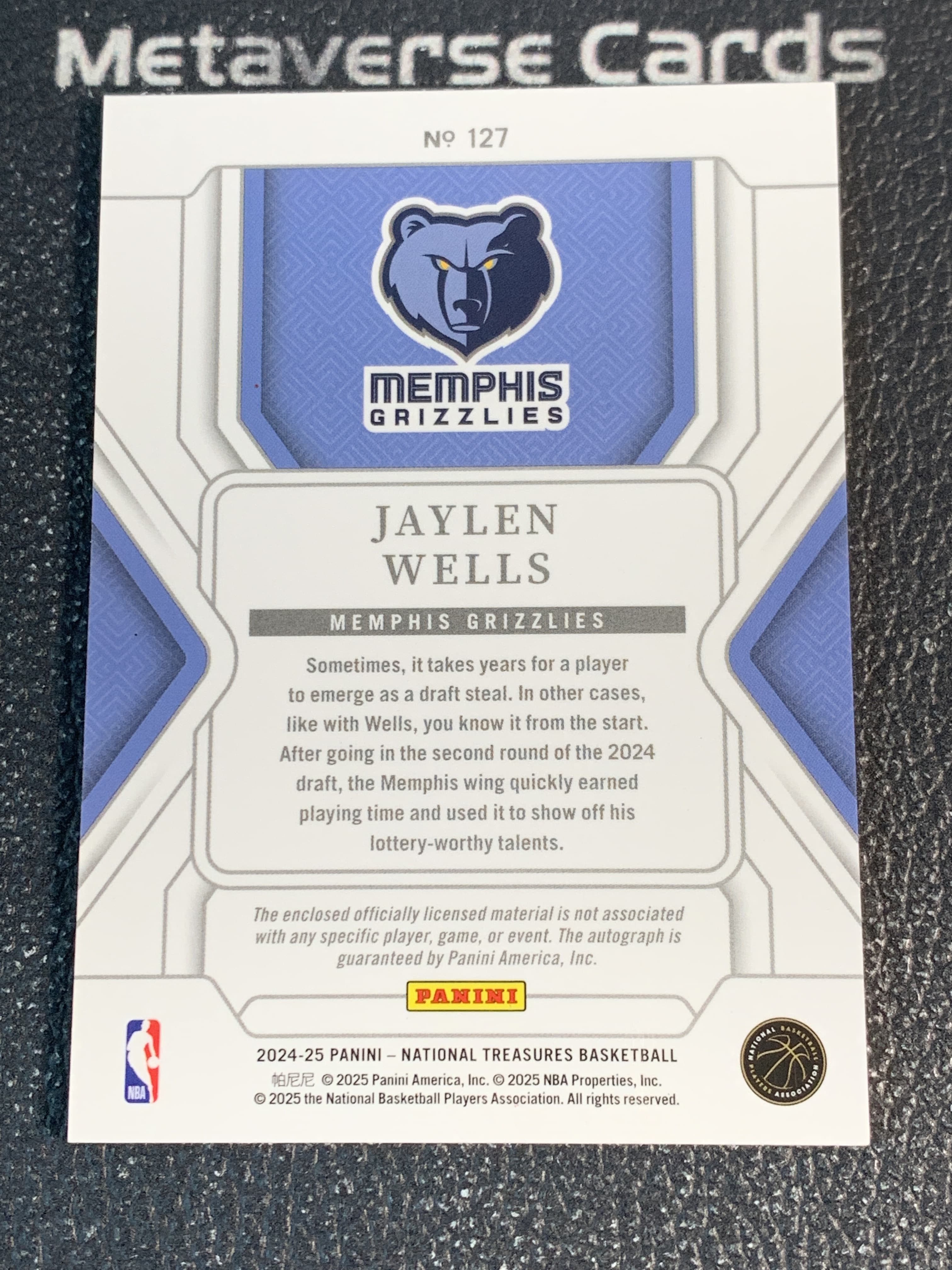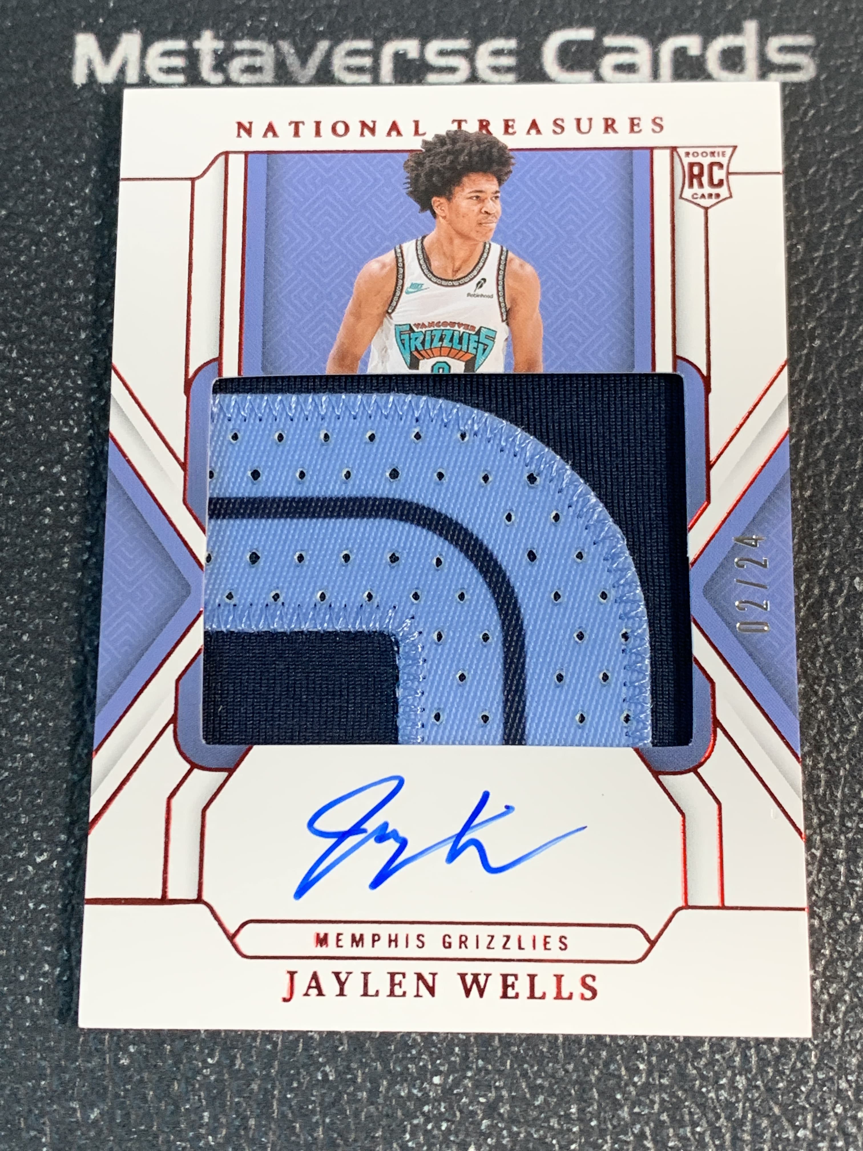 【元宇宙拍卖】蔡七602:2024-25 Panini National Treasures Jaylen Wells 国宝 杰伦 威尔斯 灰熊 RC 新秀 patch 签字 rpa 国际版 暴力切割 卡签 02/24编 微瑕如图 收藏必备