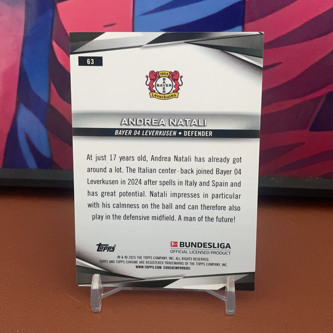 2025 Topps Chrome Andrea Natali RC 纳塔利 新秀 3/5 红熔岩 超低编 德甲 意大利 勒沃库森 未来可期 豪门猎物 收藏必备 卡品如图(DFG)通品 拍前看描述