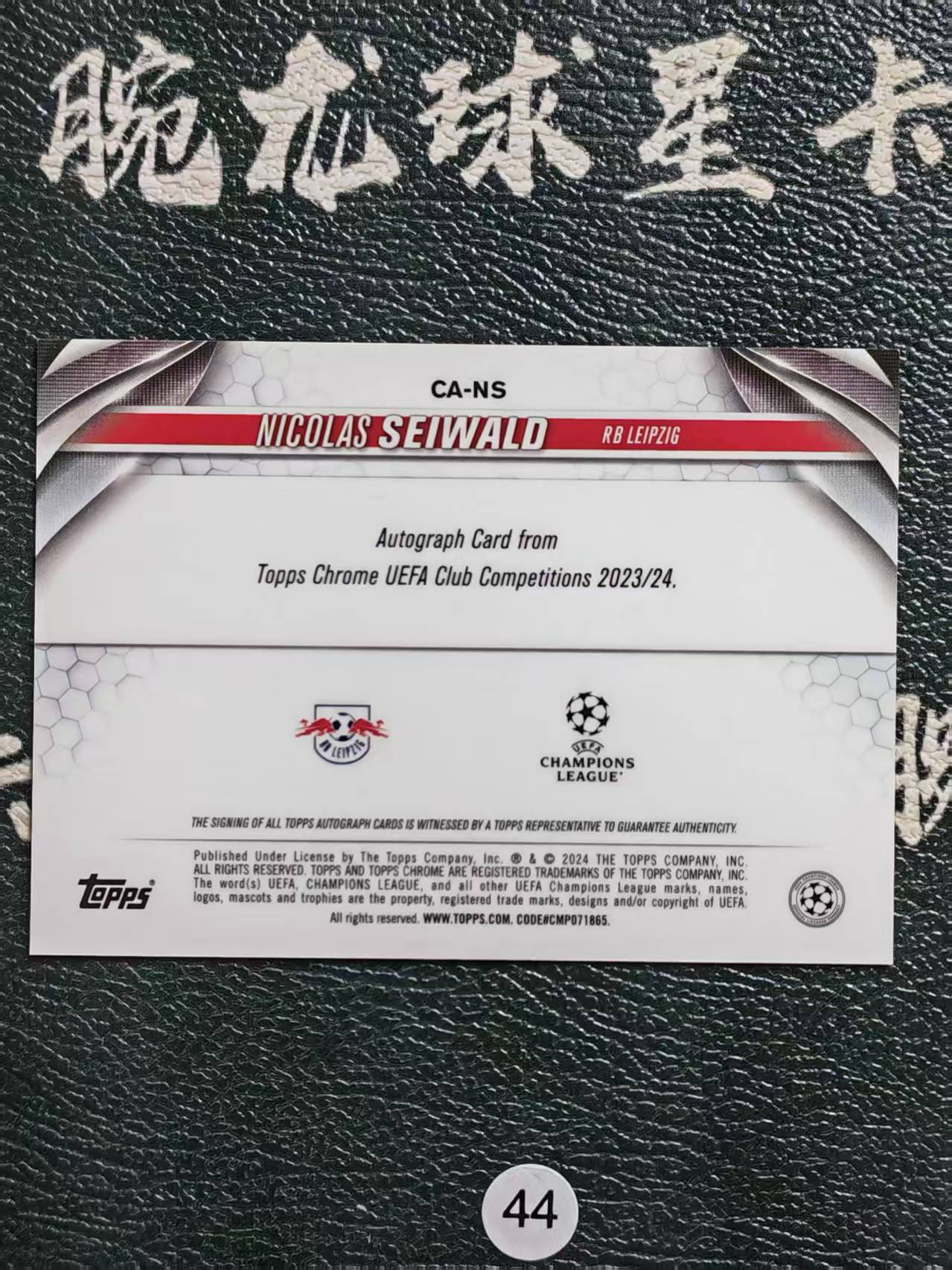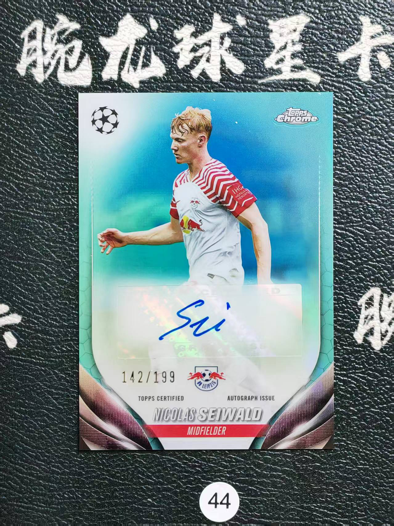 2024 【腕龙拍卖 接代卖】 腕龙E总aa8 Topps Chrome 欧冠 TC 塞瓦尔德 莱比锡红牛 青折 142/199编 签字 墨迹如图 Nicolas Seiwald 卡品如图